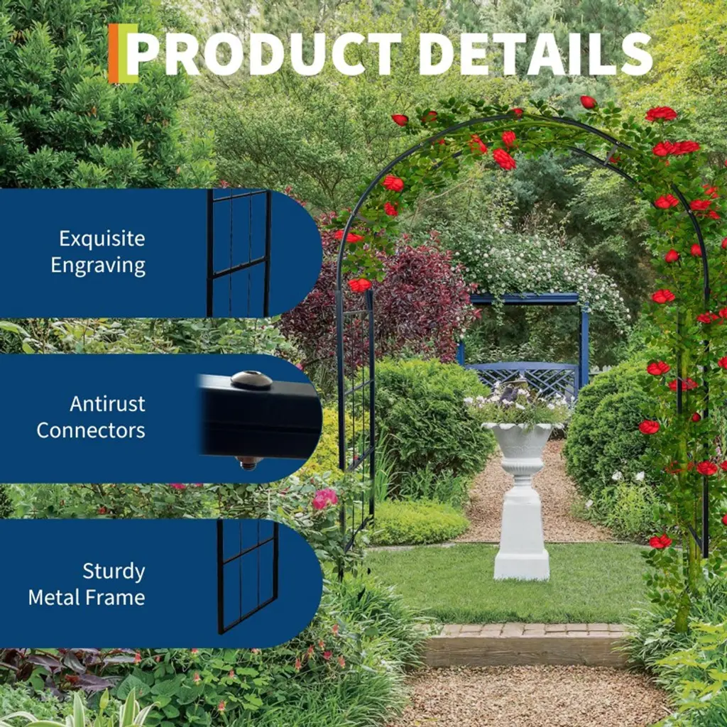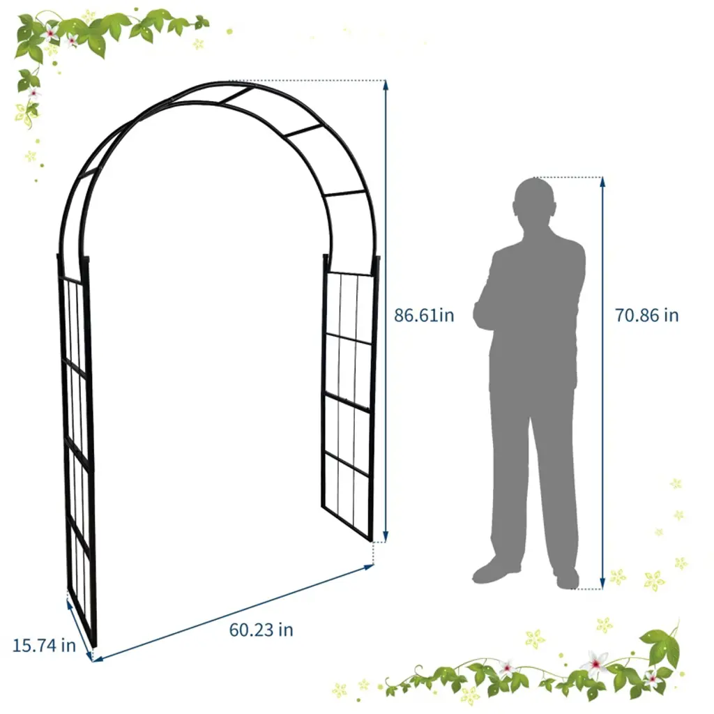 Metal Garden Arch Trellis, 60.23" W x 15.74" D x 86.61" H, Garden Arch Trellis for Climbing Plants Outdoor- for Roses, Vines, Wedding Arches for Lawn, Patio, Backyard (Black)