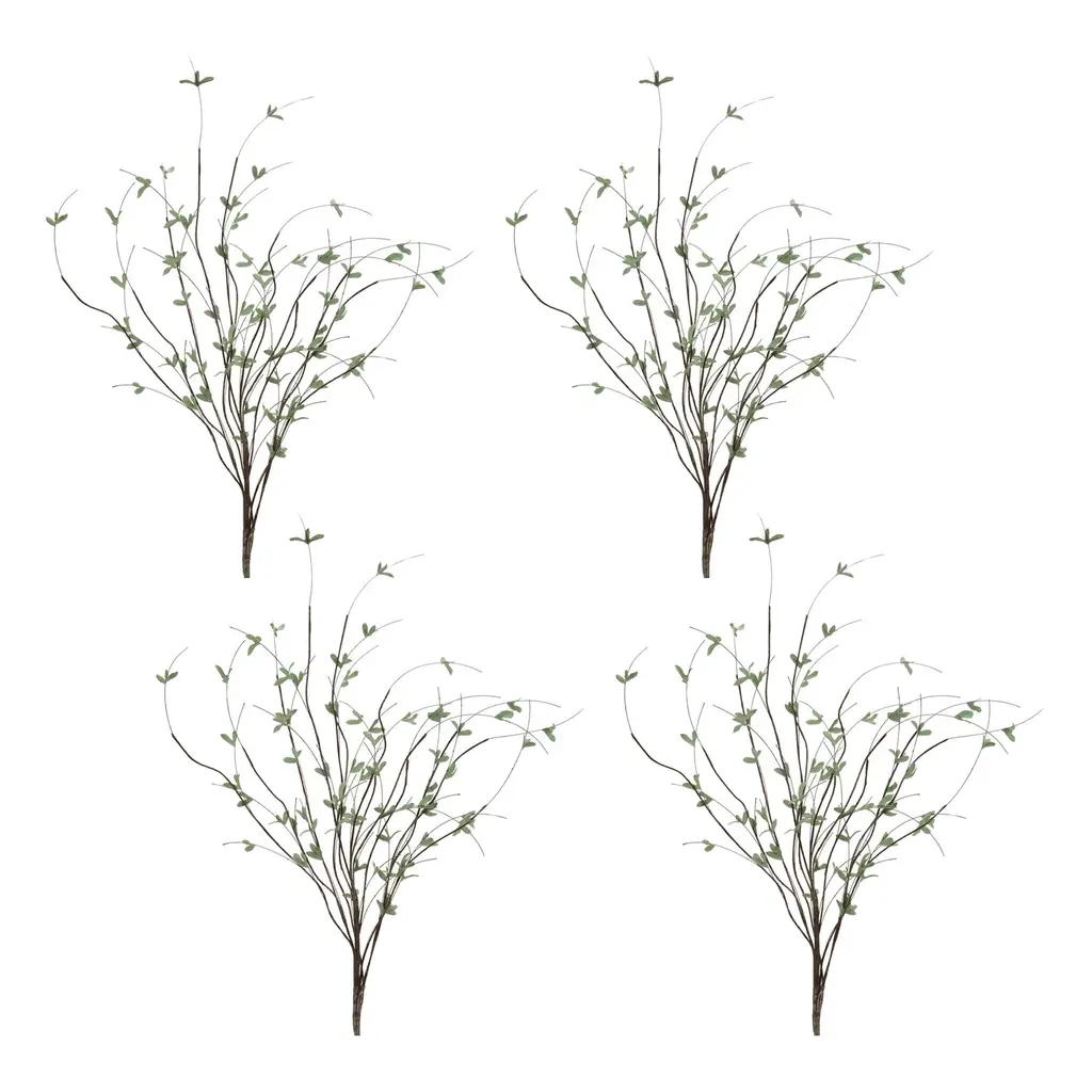 Bring a touch of rustic charm to your space with this Mini Leaf & Twig Branch Spray. Standing at 46 inches tall, each branch showcases a natural blend of green mini leaves and brown twig accents for a realistic, woodland-inspired look. The wired stems and branches offer flexibility and support, making them easy to style in vases, garlands, or seasonal wreaths. Sold as a set of 4 matching pieces, perfect for adding height and texture to any arrangement.