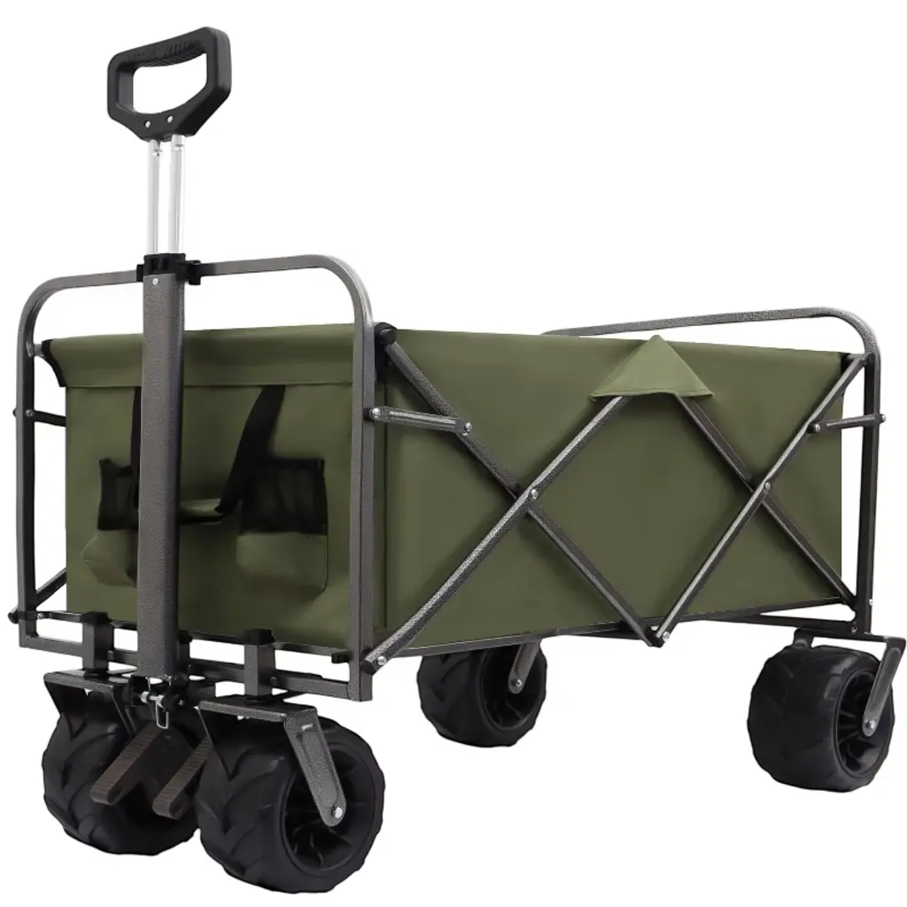 Minimeetall Strap Collapsible Foldable Wagon Cart With Strapping System, Beach Wagon, Utility Cart, Army Green