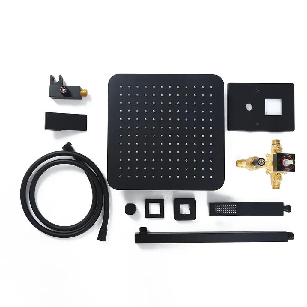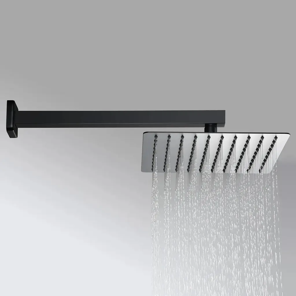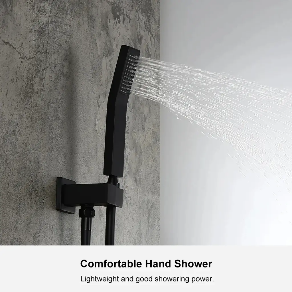 Transform your shower with this modern rainfall shower system. With crisp, clean lines and right angles, it instantly gives a modern look for your bathroom upgrade. Featuring a ultra-thin air injection showerhead, this shower system will provide a consistent, powerful spray that simulates the feeling of raindrops falling down onto your skin, an unprecedented therapeutic massage. A matching hand shower will aim focused spray wherever you want for targeted cleaning and washing. With a pressure balanced valve, it will deliver water at the desired temperature without fluctuations in case of scalding injuries. A lasting and eye-catching addition to your bathroom.