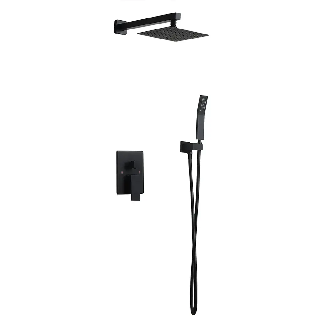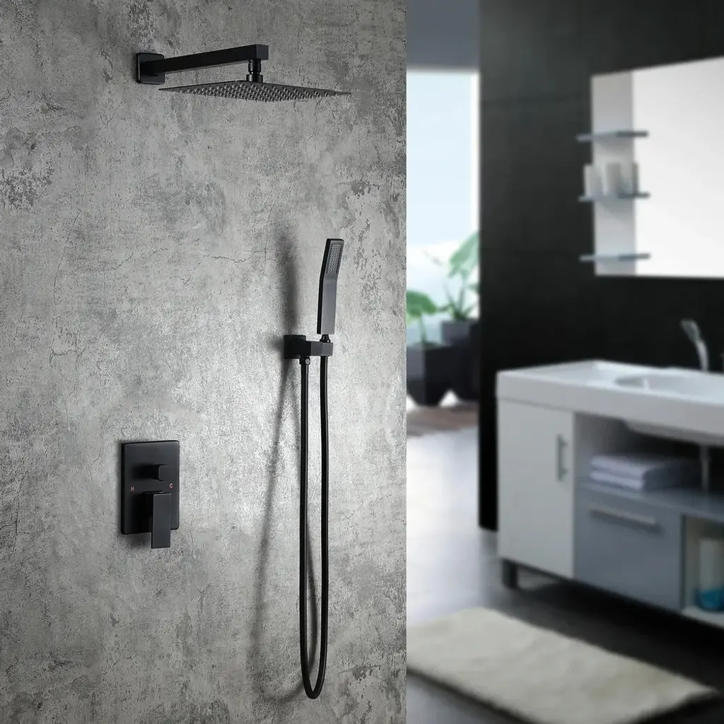 Modern 12" Wall Mounted Shower System With Handheld Shower Pressure Balance Valve