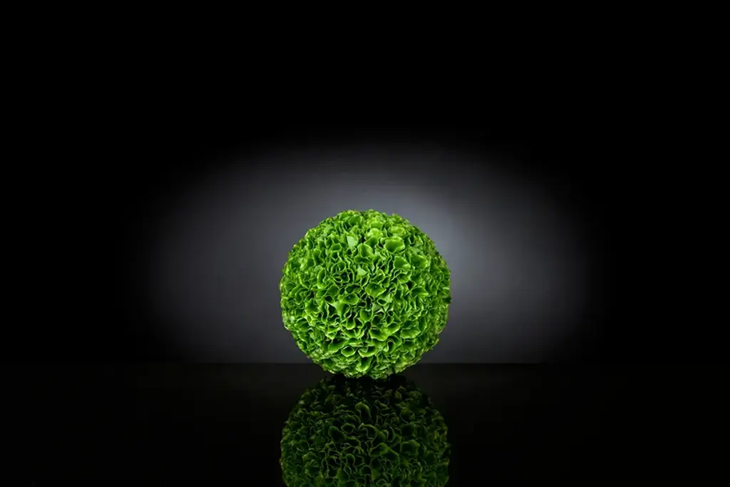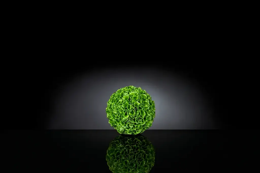 Sphere shaped flower arrangement with artificial flowers for interior decorating, wedding & events, home decor.