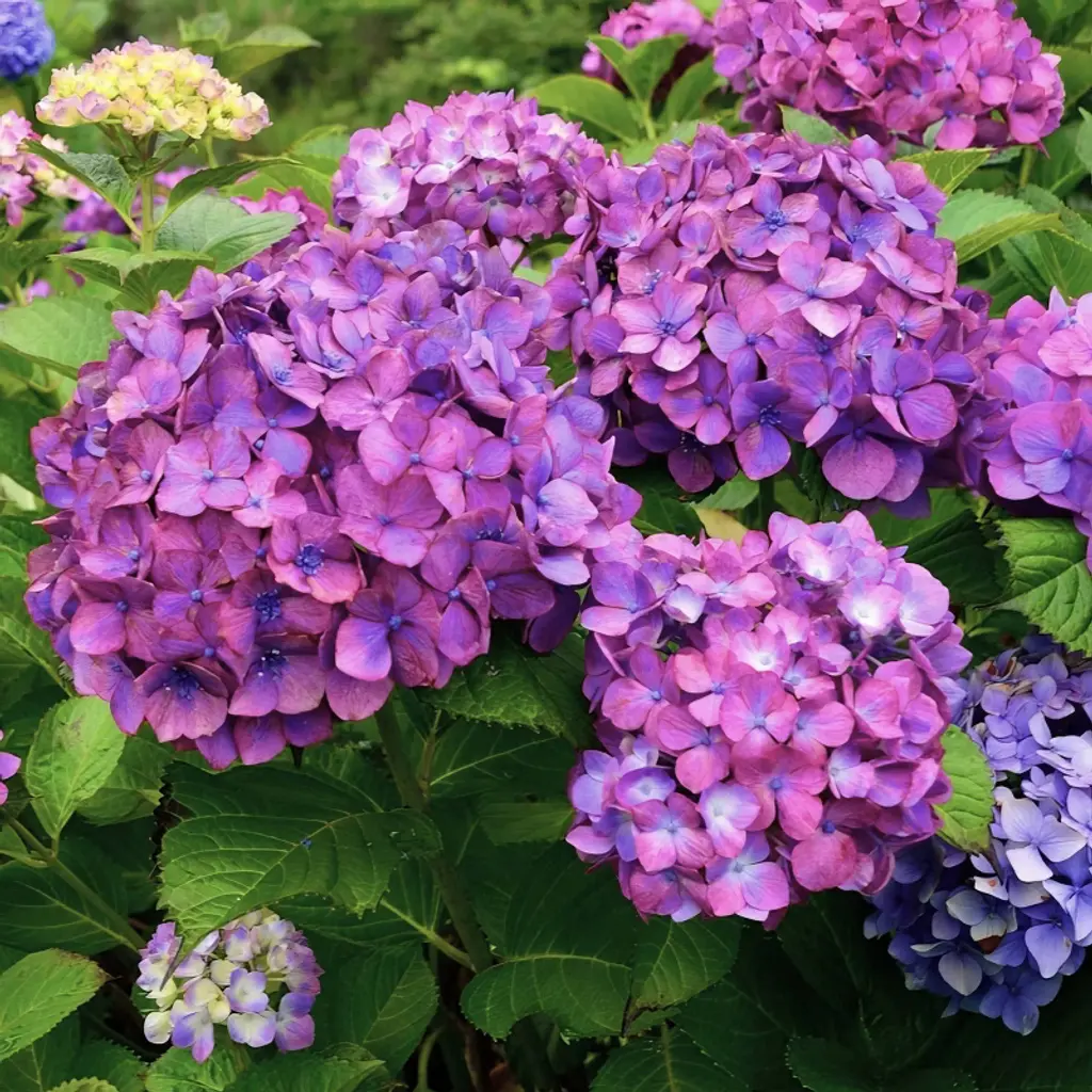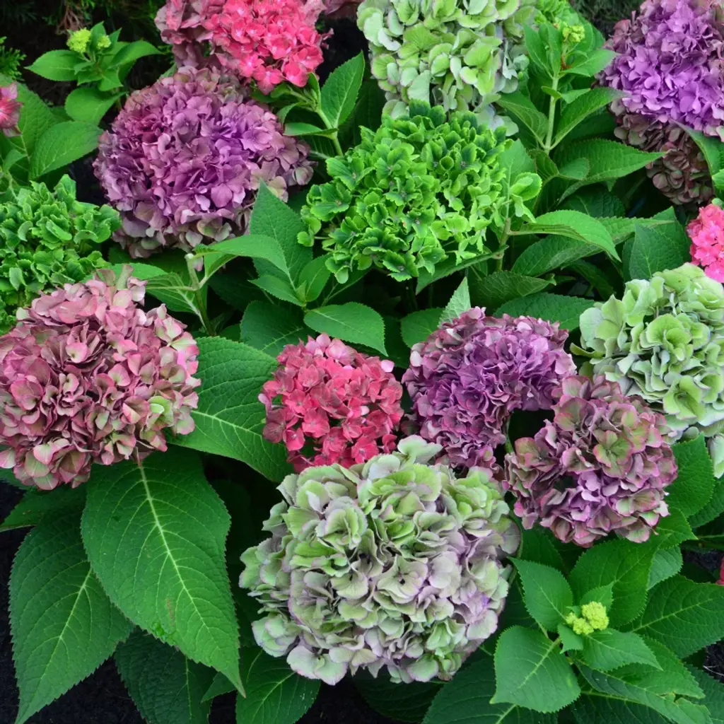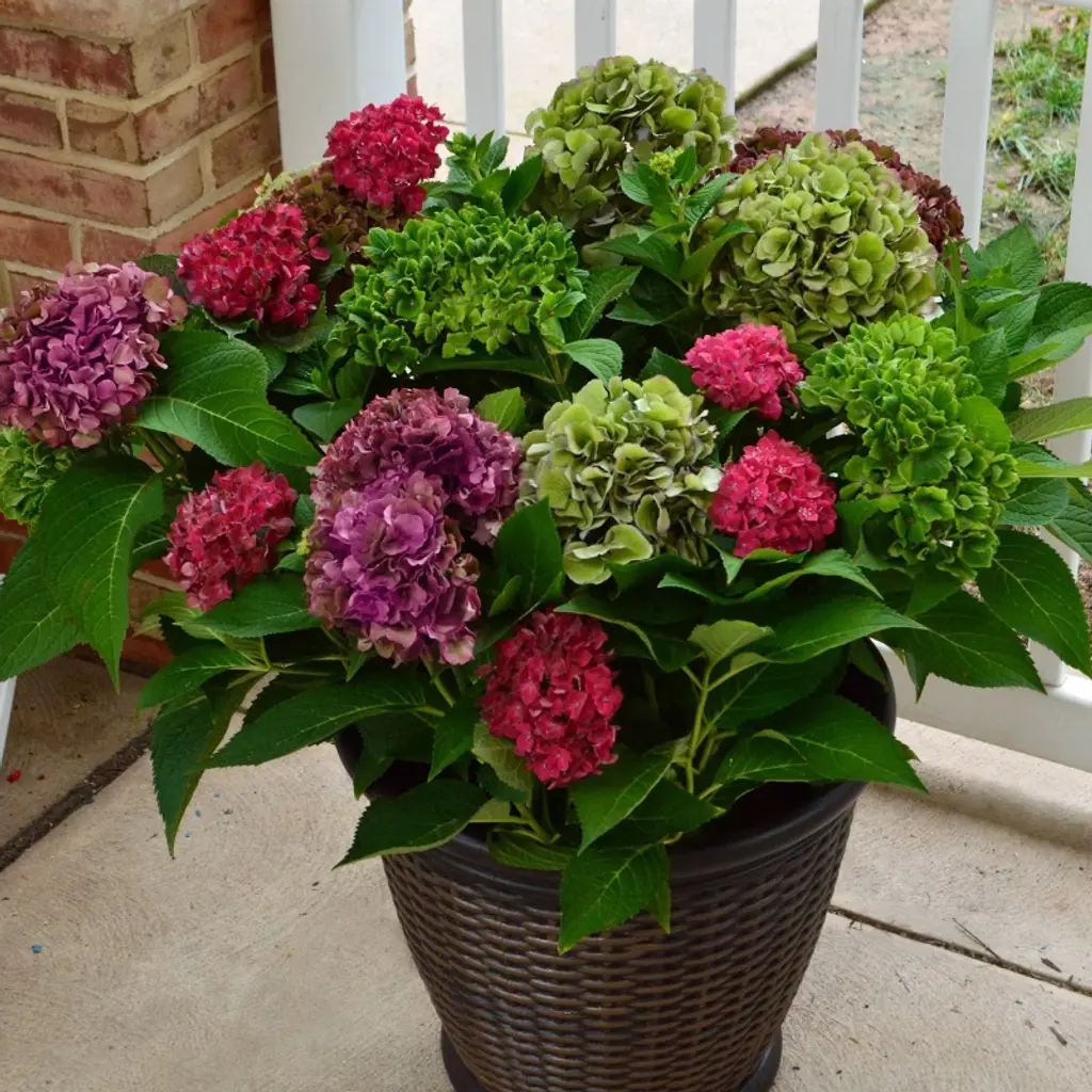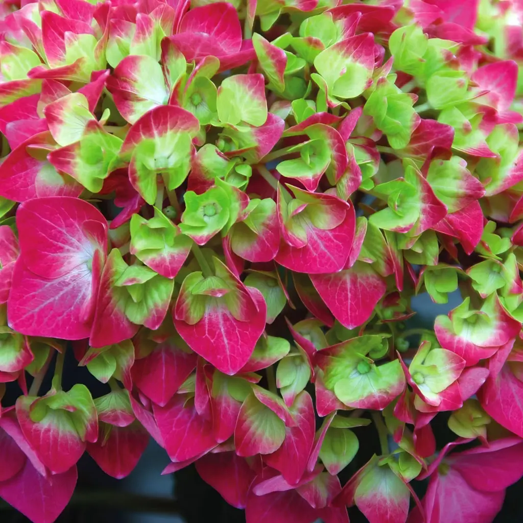 Lime Lovebird produces massive, multi-colored blossoms that change from lime green to hot pink before ending with a beautiful shade of blue. Reblooming prolifically from summer to late fall, it provides continuous color in the landscape and an excellent source of cut flowers. Lime Lovebird is ideal for mass plantings in the landscape, foundation plantings, and even large containers on the patio.