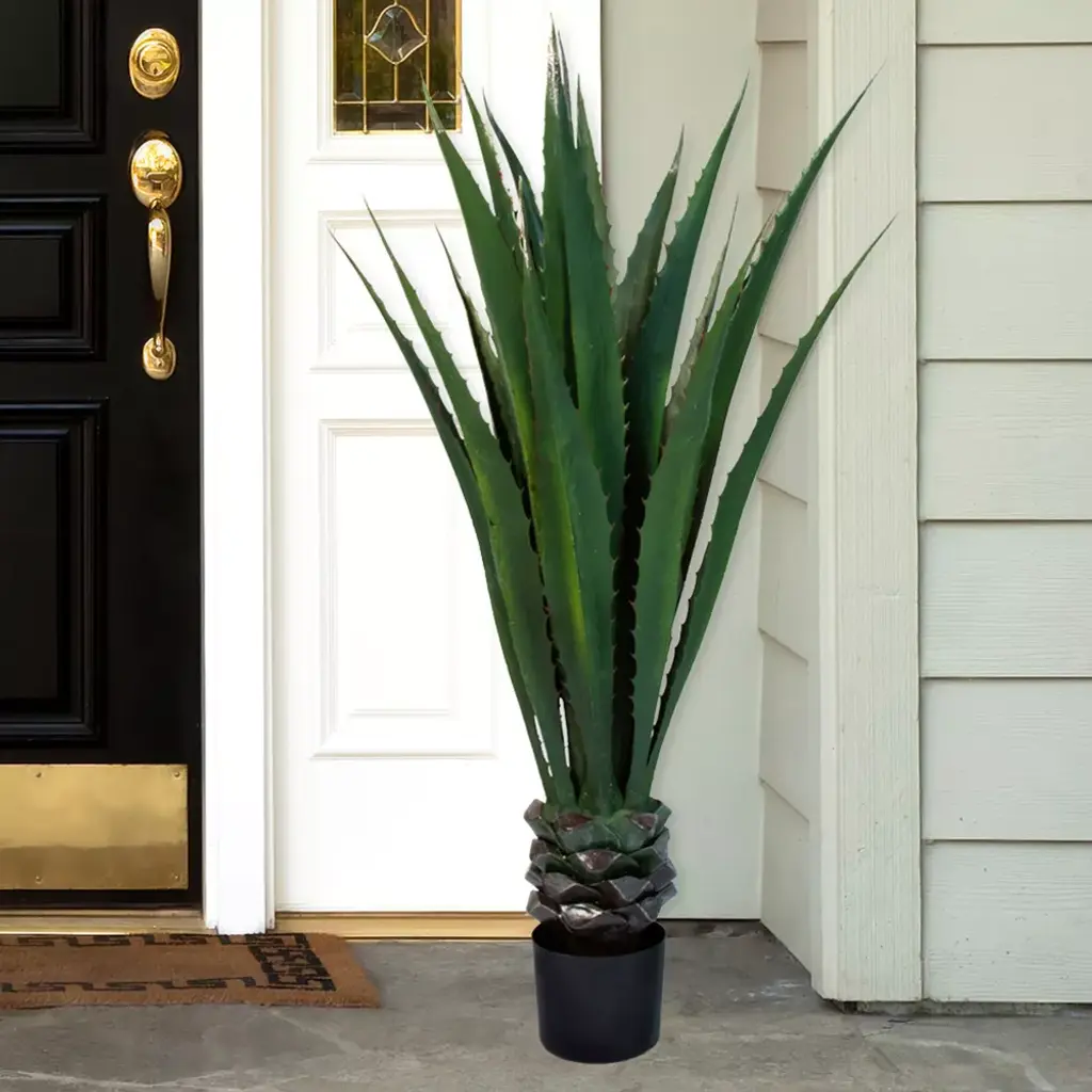 Bring some southwestern flair to your collection of artificial plants indoor by adding this Giant Agave Indoor Tree by Nature Spring to your living space. This large fake plant features 17 spiny leaves that precisely mimic the look of real giant agave. Standing at 52-inches, this tall fake plant makes for an eye-catching focal point within themed plant décor displays. Its UV-resistant construction lets you showcase this fake floor plant as an outdoor or indoor plant, letting you add southwestern style to your living room, hallway, patio, or office décor.