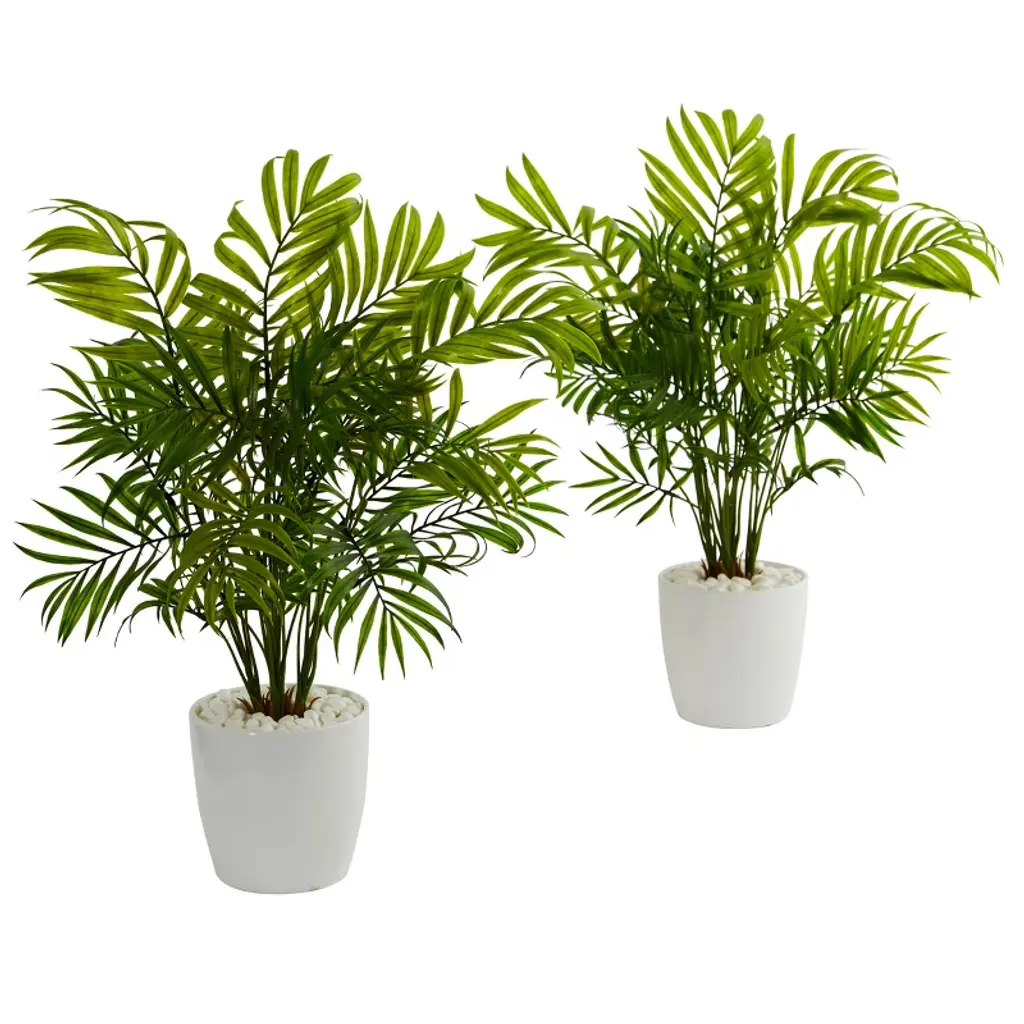 Nearly Natural 19.5-in Palms In White Planter Artificial Plant (Set Of 2)