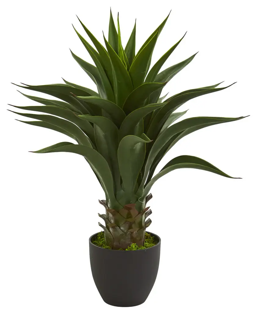 Three multicolored stalks stand at different heights and sit within a simple pot with this artificial agave plant. Like the original agaves that are found in hot and arid climates, this ornament has thick, fleshy green leaves that will bring a southern western touch to any closed-off study or den. Add other succulent plants to this piece for a complete look.