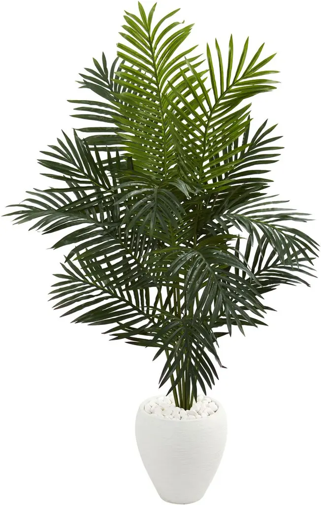 With multiple shoots growing in every direction, and bright green fronds extending up and slightly outwards, this artificial paradise palm tree has a rich, full look that makes it the perfect piece to bring the outdoors into your home. At 3 feet tall, this artificial tree would look great paired with taller tropical plants and placed in the corner of your living room for a complete look.
