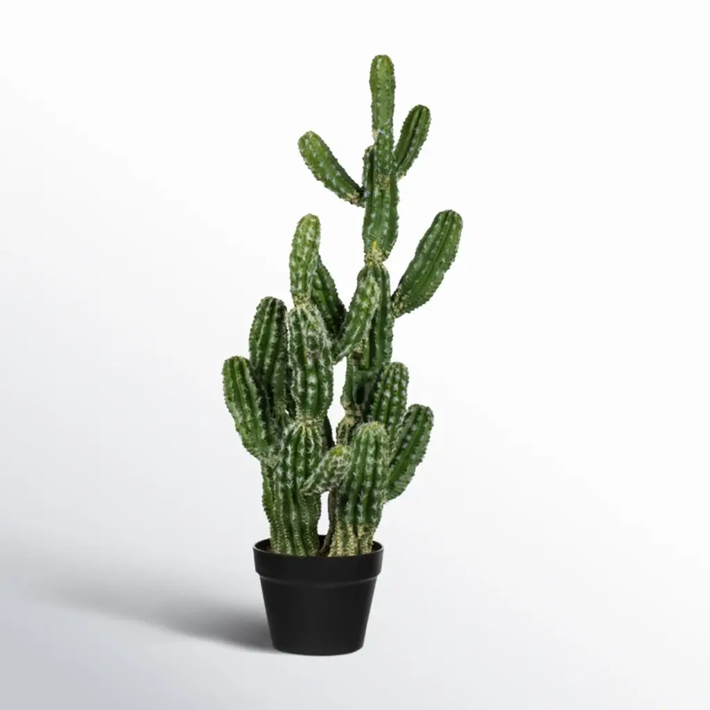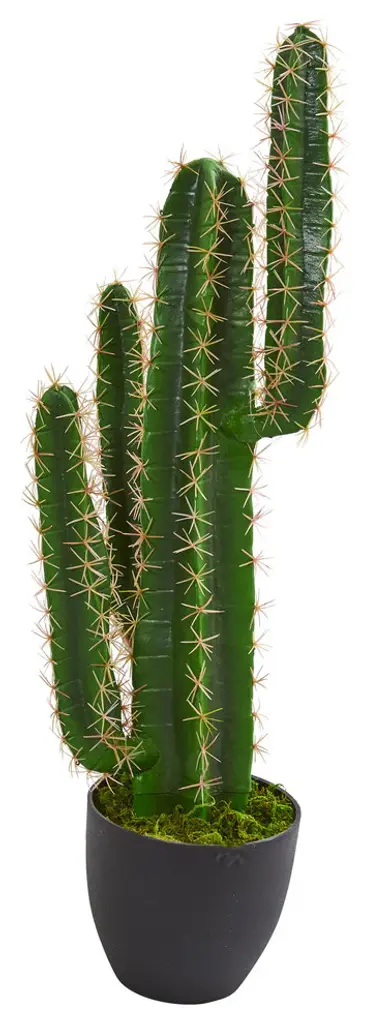 The 37-inch artificial cactus plant has three large stems that sit on top of one another. Each individual stem has two smaller stems that protrude out of it. With an abundant amount of spines scattered across the stems, this artificial plant will look great in your home or office. You can pair it with a tropical tree on your enclosed porch or entryway for a fun look.