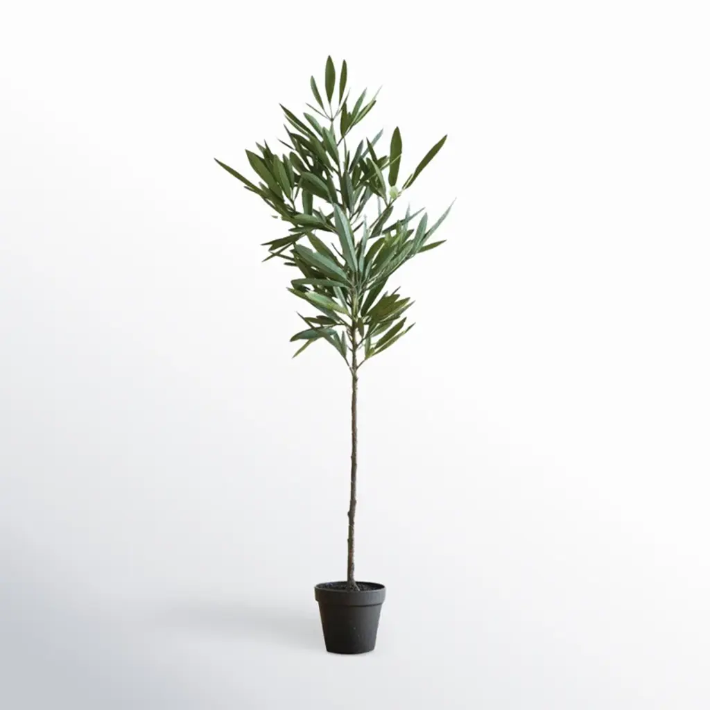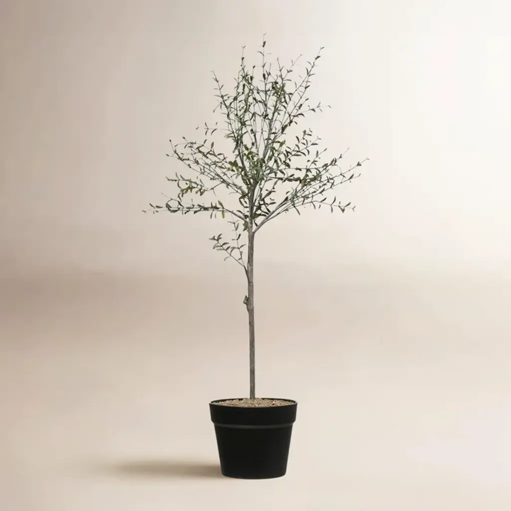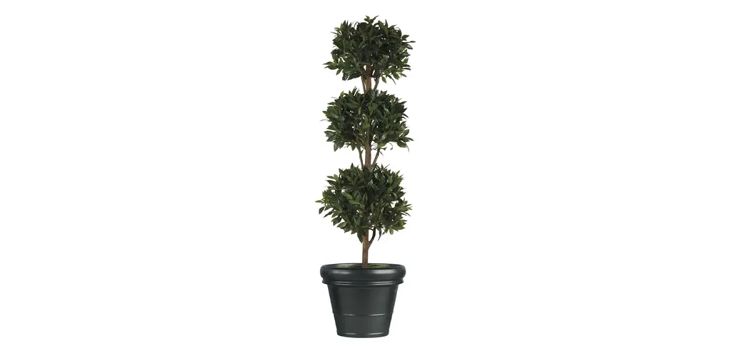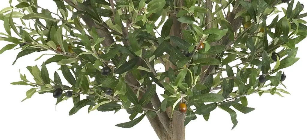 Delicate, yet sturdy; whimsical yet stately; this olive double topiary fits snugly into any d_cor, and announces nature's majesty, all year round. The 1794 leaves are divided into two faux growth points from the stately trunk, and splay about in all directions, giving a casual appearance that perfectly contrasts the neatness of the two groups. Makes an ideal doorway accent or conversation piece.