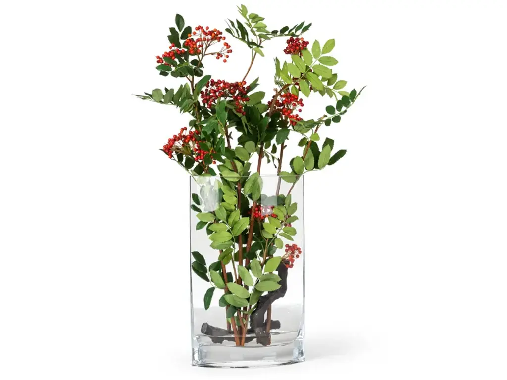 This splendid bouquet captures the hearty beauty of nature's most cherished flora. Branches of magnolia buds and green olive leaves are arranged in a round clear glass cylinder for an exquisite display that looks fresh year round.