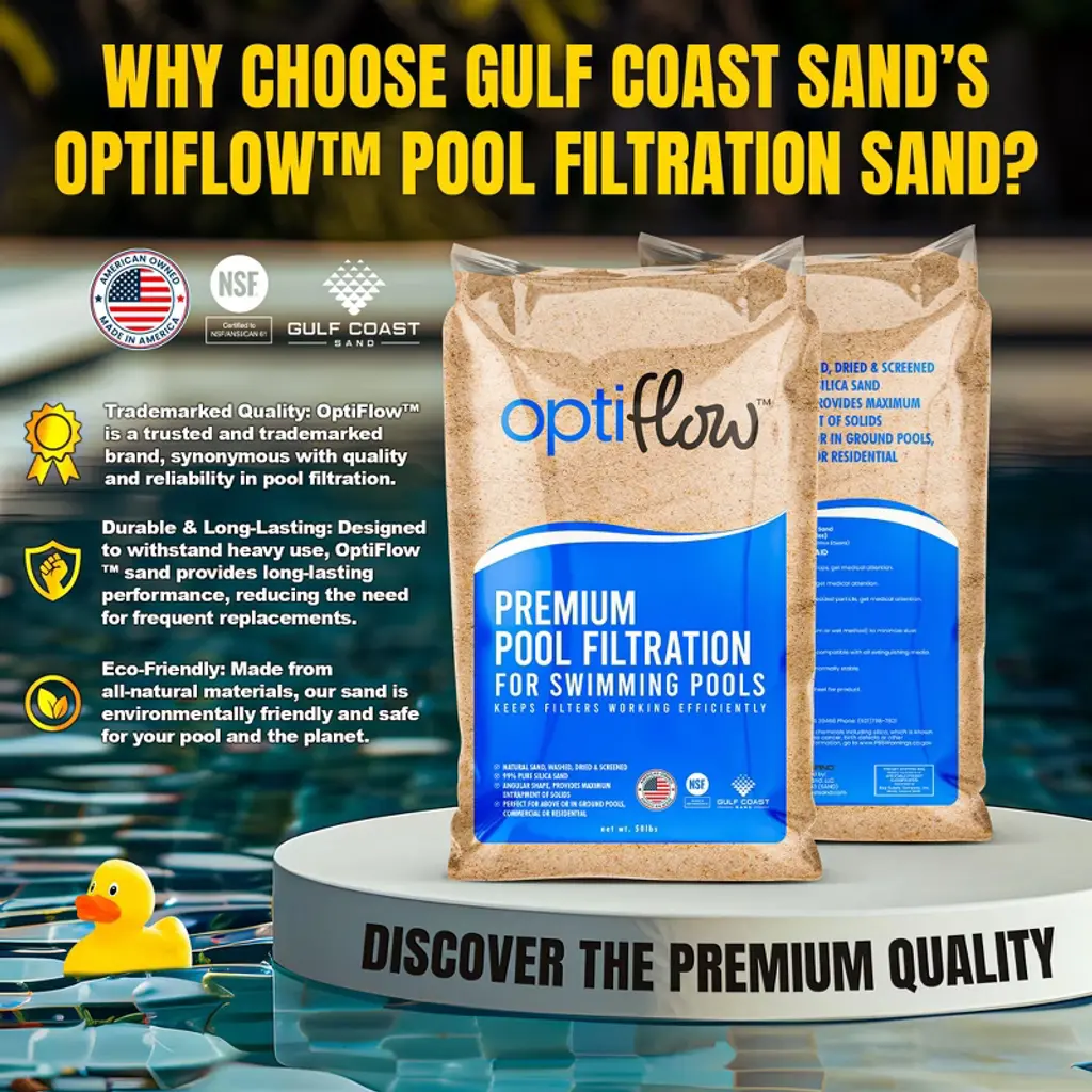 Transform your pool maintenance with OptiFlow's 50-pound Premium Pool Filtration Angular Sand. Engineered for superior performance, these premium-grade filtration sands are the ultimate choice for crystal-clear water. The pure silica formula ensures exceptional water clarity by effectively capturing dirt, debris, and other impurities. Each grain is carefully selected and processed to maintain the optimal angular shape, enhancing filtration efficiency and longevity for your pool's filtration system. OptiFlow is meticulously designed to offer maximum filtration, making it an indispensable component for pool owners who demand the best. Its unique composition promotes efficient water flow, decreasing backwash frequency and conserving water. The angular grains interlock to create a stable and robust filter bed, containing channeling and ensuring consistent performance over time. For the eco-conscious pool owner, OptiFlow is the responsible choice. Its environmentally friendly and safe formula is free from harmful chemicals, ensuring the purity and safety of your pool water. Trust OptiFlow 50-Pound Premium Pool Filtration Angular Sand to deliver unparalleled performance, keeping your pool a pristine oasis all season long. Elevate your pool experience with the unmatched quality and reliability of OptiFlow, and dive into crystal-clear waters like never before.