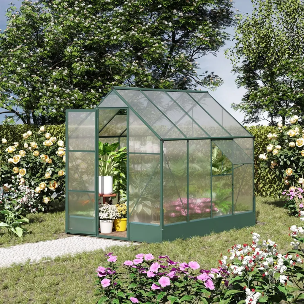 Outsunny 6' X 8' X 7' Walk-in Plant Polycarbonate Greenhouse With Temperature Controlled Window Hobby Greenhouse For Backyard/outdoor