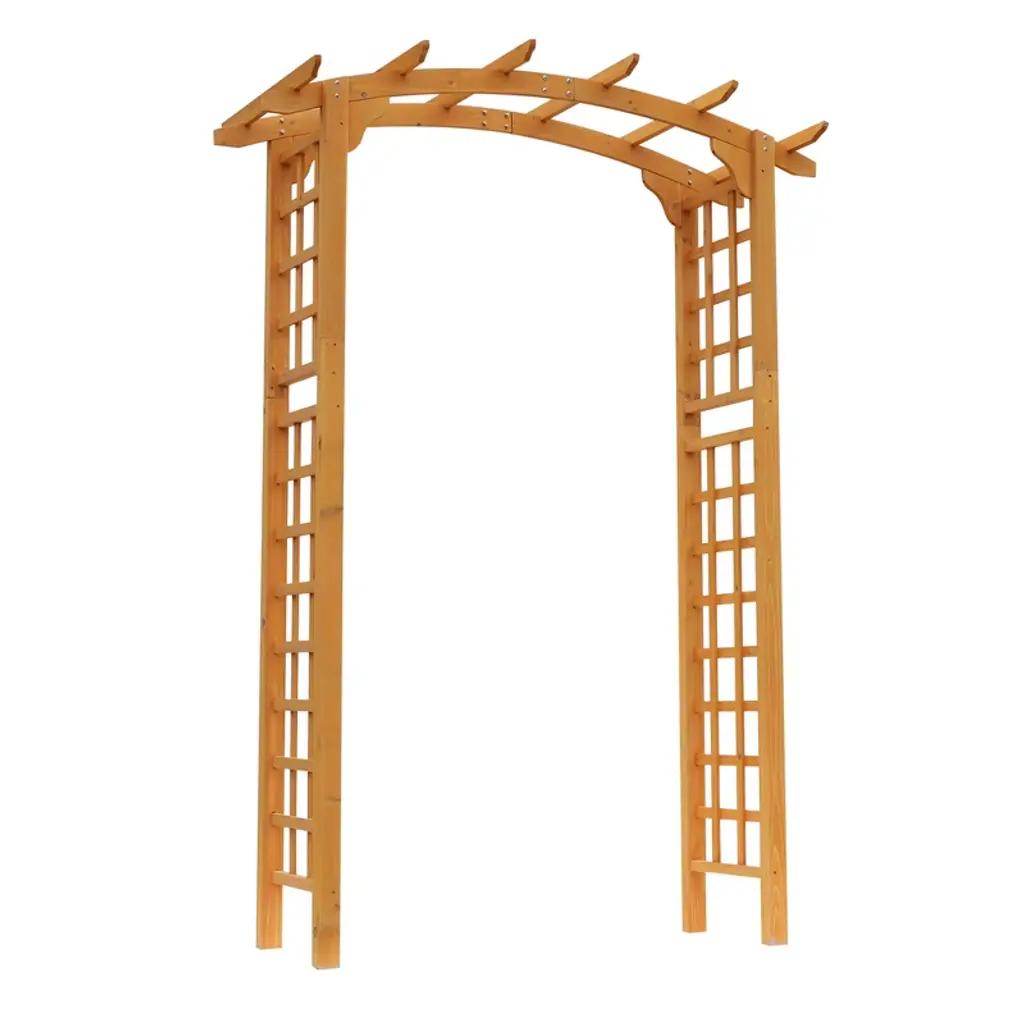 Bring a little southern charm to your garden with elegant and delicate scrollwork from Outsunny! Constructed of a natural fir wood frame, this garden arbor will easily blend into your already beautiful garden. The top horizontal bars of this garden arch provide structural support as well as an ideal place to hang lightweight potted plants. The garden trellis is perfect for supporting lightweight climbing plants and vines. Display small hanging accents on this arbor arch in order to create a beautiful entry into your garden. The perfect addition to weddings, ceremonies, and other outdoor events.