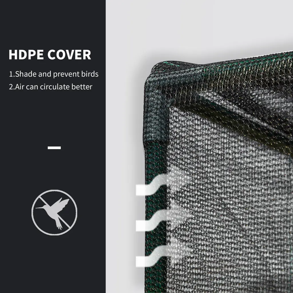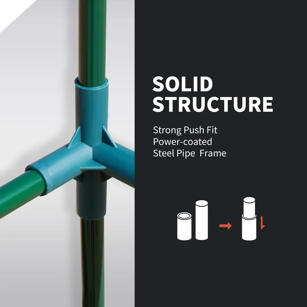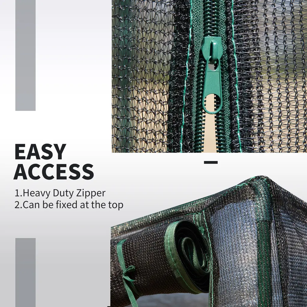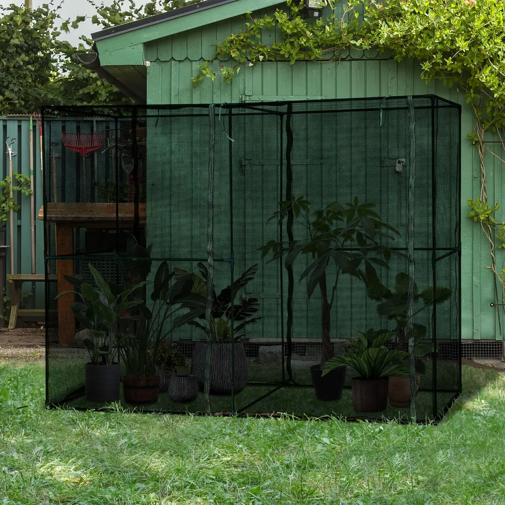 This Outsunny garden greenhouse is perfect for the home gardening enthusiast who is looking for a way to stay in the soil all-year-round! The frame and HDPE cover offers all the protection your plants need to thrive without having to spend a great deal of time yourself. This cover also allows for natural lighting to pass throughout the entire structure, while protecting against birds, insects, and other animals. Furthermore, the two doors are zippered, allowing for easy access whenever you need to see your friends. Easy to assemble and take down, our Outsunny greenhouse is the ideal solution for keeping your plants happy and healthy throughout the year.Feature:Specificatoion: