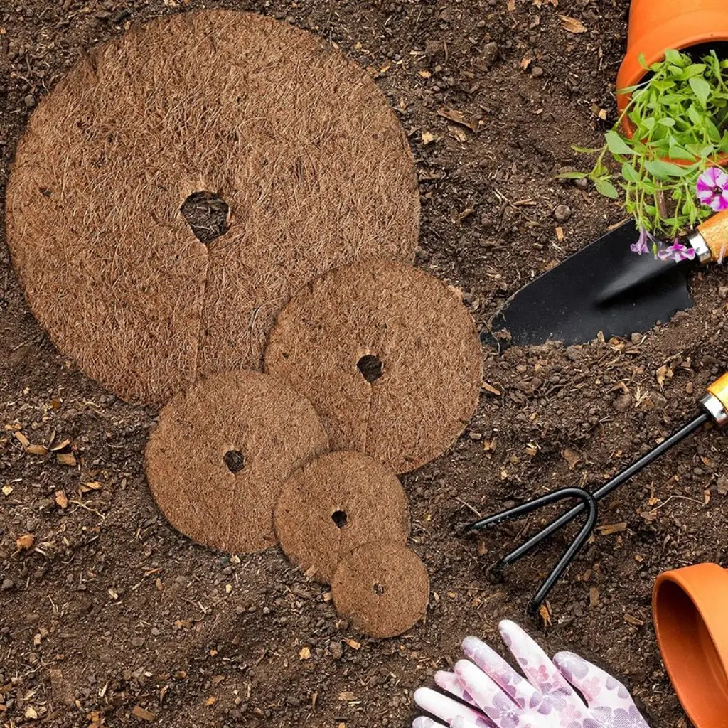 Control wild growths and protect your plants with the Palm Naki Coconut Coir Round Plant Protector Mats, available in sizes 6", 8", 10", and 24". These round mats are specifically designed to prevent unwanted growths while allowing essential water, sunlight, and nutrients to reach the roots of your plants. Made from eco-friendly coconut coir, these mats provide excellent protection against nutrient-sucking wild garden growths that can consume up to 95% of the water around them, causing irreversible damage to your plants, flowers, trees, or vegetables. Using the Palm Naki Plant Protector Mats is simple. Just place the mat over your plant or around a tree trunk and enjoy a beautiful, healthy garden. You can easily cut the center hole to fit your plant or tree properly. Palm Naki is committed to providing high-quality, eco-friendly products that perform well and help create a better world. These reusable mats are responsibly sourced and designed to leave a positive impact on the environment. Backed by Palm Naki’s promise of quality and customer satisfaction, these plant protector mats are an essential addition to any garden.