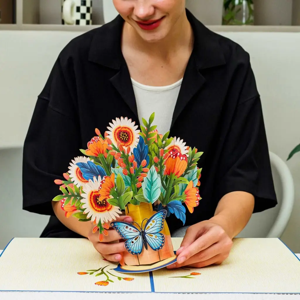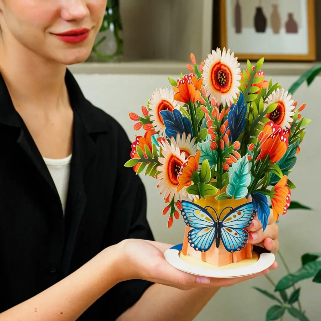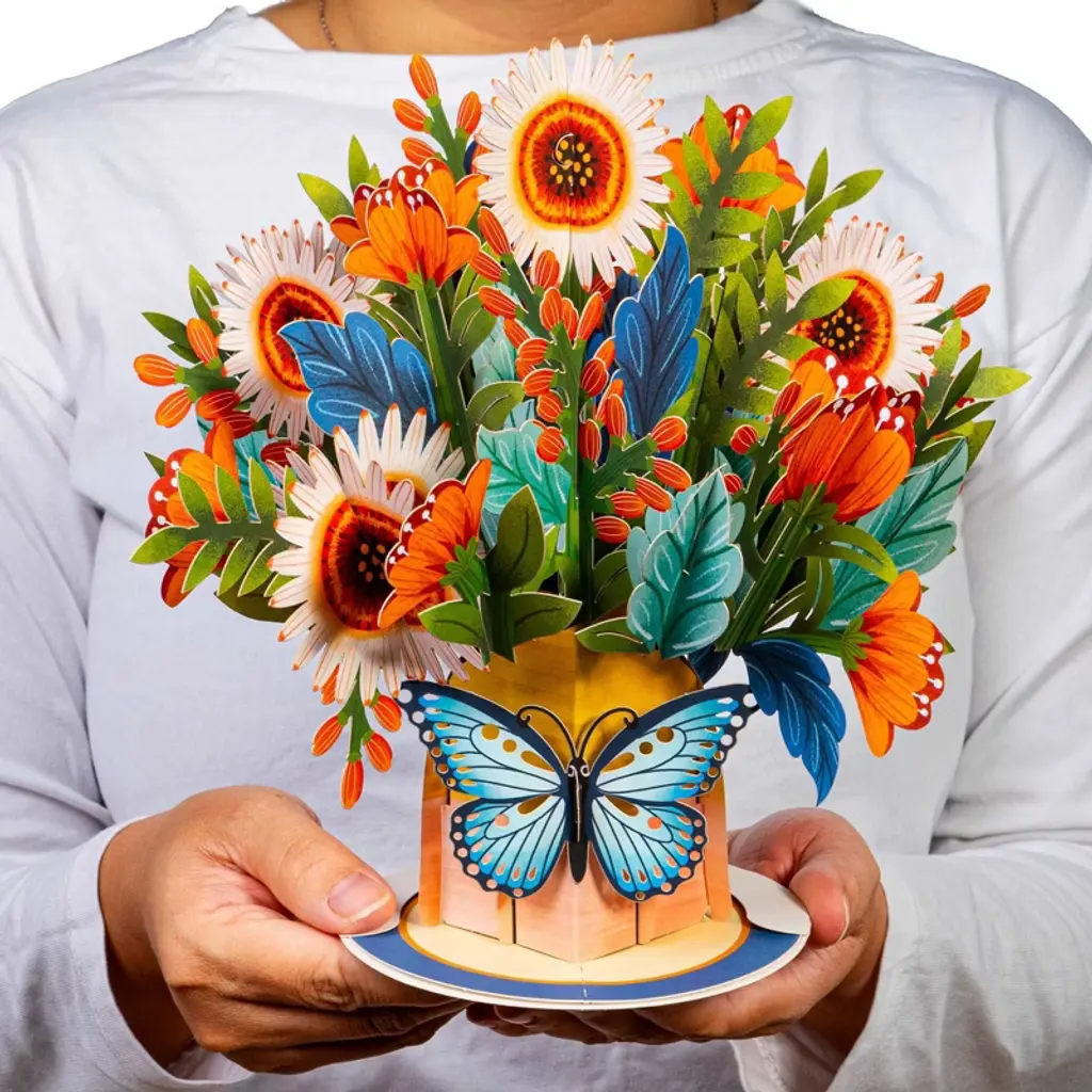 Celebrate with the Paper Love HugePop Artisan Bouquet, a gift that lasts long after real flowers fade. This stunning pop-up card opens to reveal an intricate 3D paper flower bouquet, beautifully laser-cut and bursting with vibrant color. It’s perfect for any occasion such as birthdays, weddings, anniversaries, thank-yous, fall, halloween, thanksgiving or just because. The innovative 2-in-1 design lets it detach into a lasting bouquet display, making your thoughtful gesture unforgettable. Surprise someone special with a pop of art that shows your love and stays fresh forever.