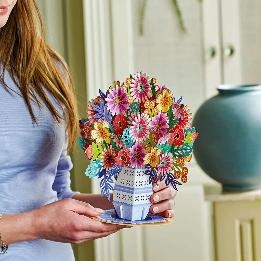 Paper Love Hugepop 3D Exotica Bouquet Pop Up Card With Detachable Paper Flower Bouquet, Gift For All Occasions - Jumbo 10" X 14" Cards
