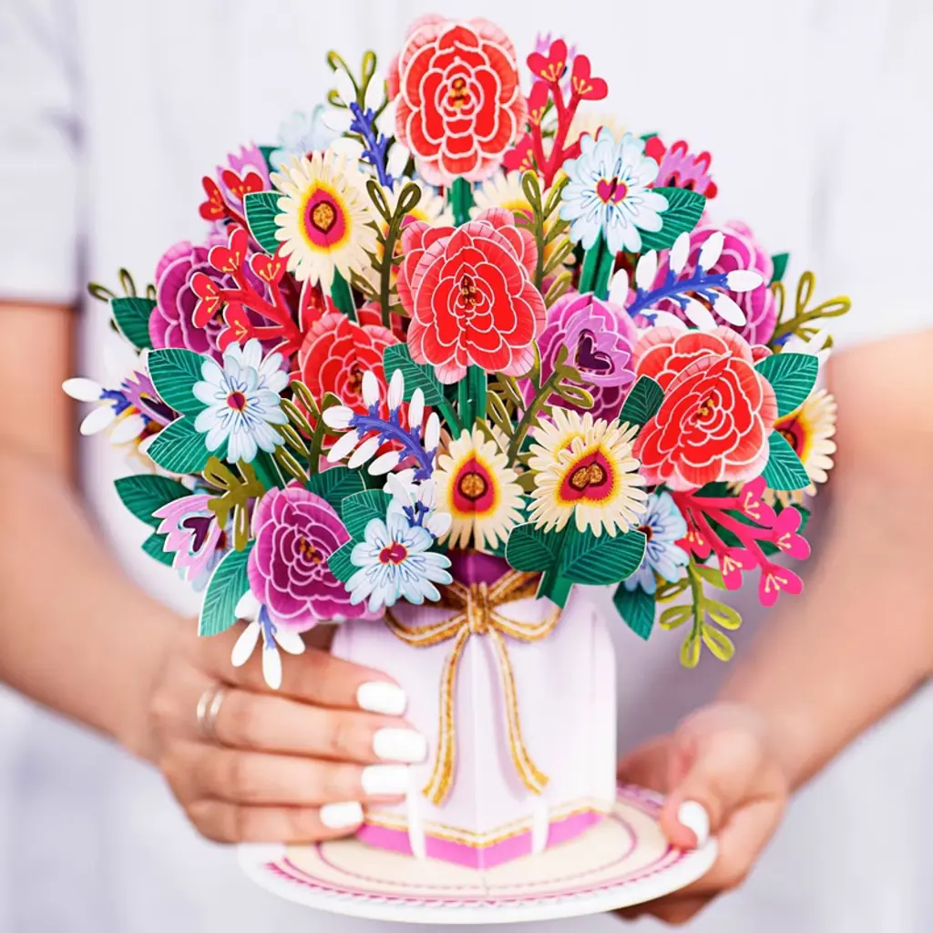Celebrate love, joy, and every special moment with a gift that never fades—Paper Love’s HugePop Harmony pop-up flower bouquet is a breathtaking 10"×14" paper arrangement that’s made to last. With vibrant colors and intricate laser-cut details, this exquisite bouquet is perfect for birthdays, Valentine’s Day, Mother’s Day, or just because. When opened, the jumbo floral design bursts to life, creating a magical and memorable surprise. Its innovative 2-in-1 design allows it to be detached and displayed as a lasting bouquet or treasured as a heartfelt card. A thoughtful gesture made to be remembered—this is harmony in full bloom.