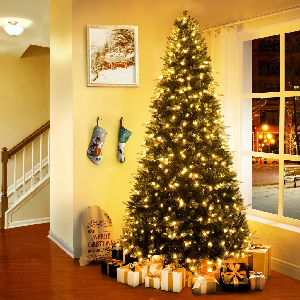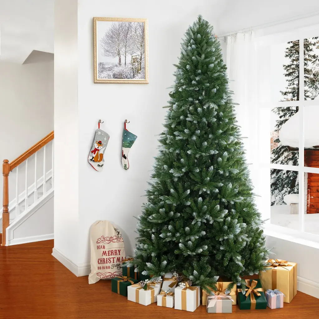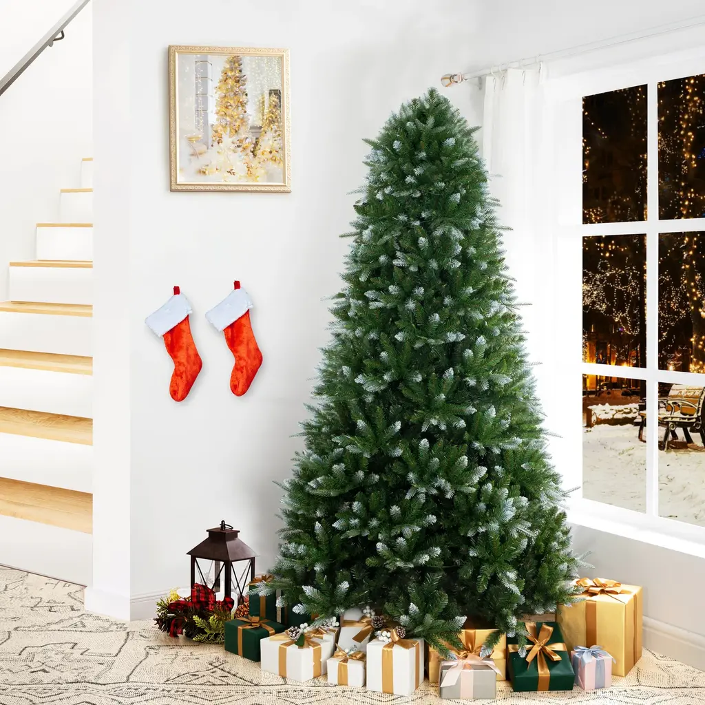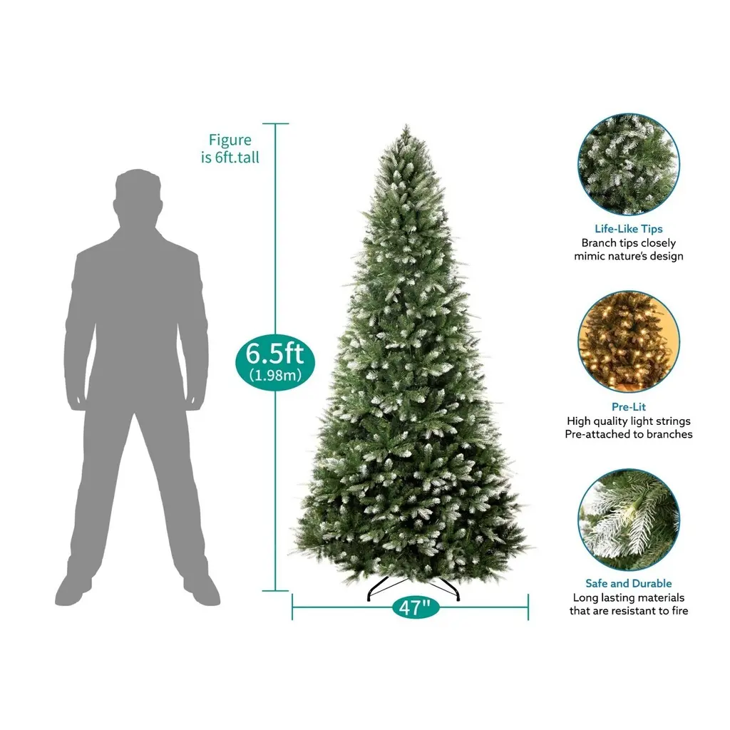 Pe & Pvc White-Tip Pre-Lit Christmas Tree With Warm Lights , Natural Look With Fluffy Branches - 7.5 Foot