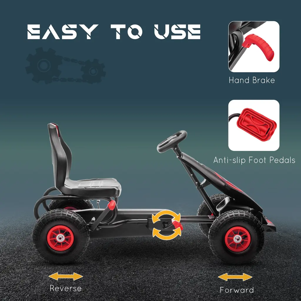 Pedal Go Kart For Kids 5-12 Years, Ergonomic Seat, Suspension System & Handbrake, Rubber Wheels - Red