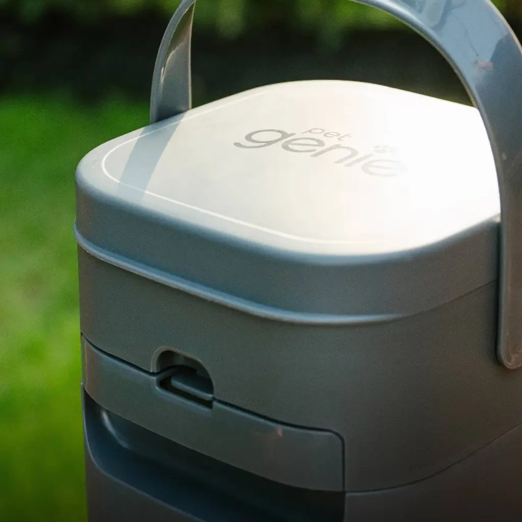 The new Pet Genie dog waste disposal system makes cleaning up dog waste so easy! This indoor/outdoor dog waste container offers an easy solution that provides convenience and ultimate odor control, so you can enjoy your furry friend odor-free. Our premium-quality dog waste bin is crafted from durable, rugged plastic with UV protection, and top handle for easy transportation. This lightweight portable dog waste disposal system will help you keep your lawn and garden healthy and clean. Dog owners can use the Pet Genie Pail indoors for puppies, adult and senior dogs. Simple to use, it can hold up to 15 medium dog diapers and up to 7 medium training pads. This innovative and modern dog waste disposal system is designed with a wide pail opening for easy disposal of waste with a sliding lever that seals odors in. That’s a great alternative to reduce the usage of multiple individual plastic dog waste bags. Includes 1 starter refill made from a multi-layer film with odor-locking barrier technology that can last up to 2 months.