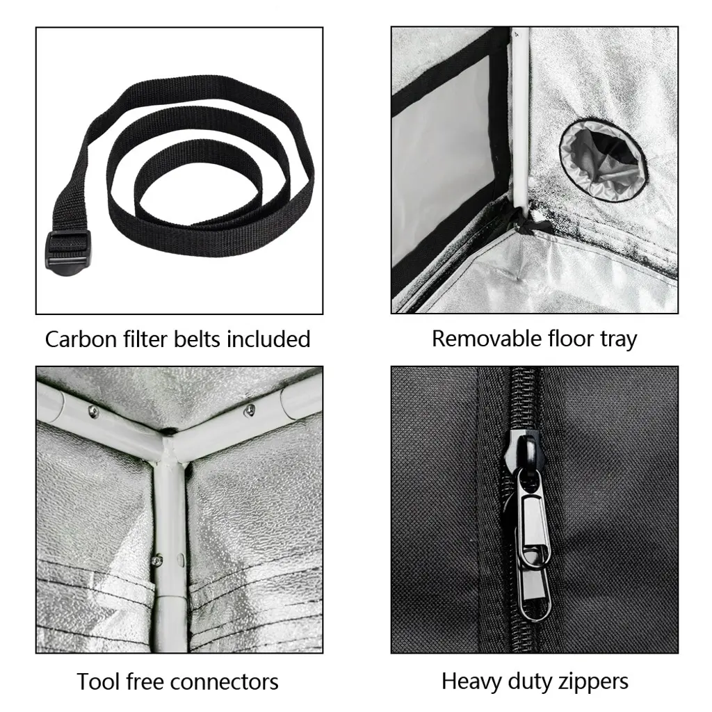 Create the perfect environment for your plants with our Plant Growing Green and Black Tent Grow Tent Kits with Window. Made with an iron frame, Oxford cloth exterior, and a PEVA interior with highly reflective silver aluminum foil, your plants will be protected from the scorching sun and rain. This lightweight growing tent also includes a convenient window, making it easy to monitor your plants' growth.Features:Additional Details: