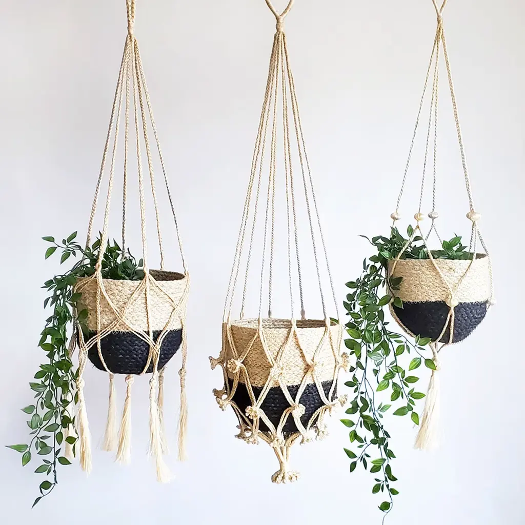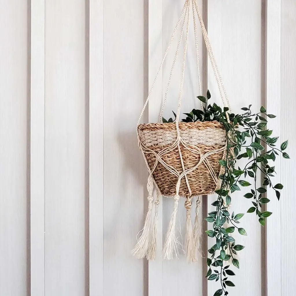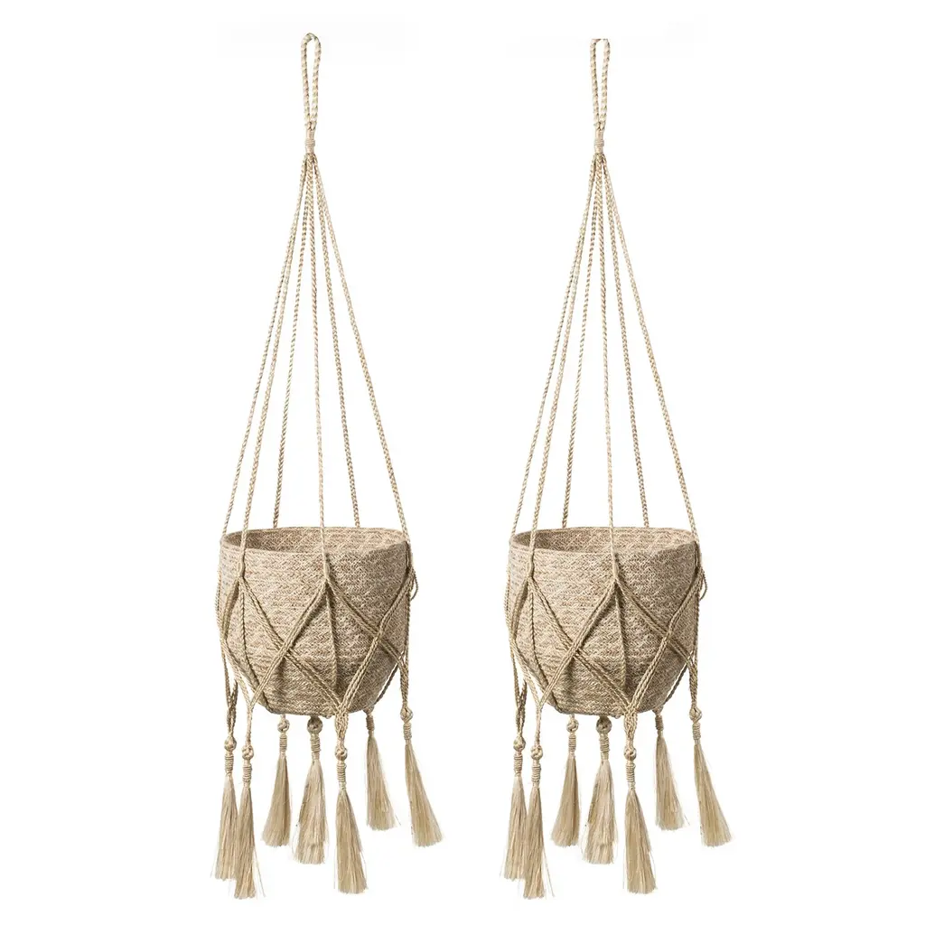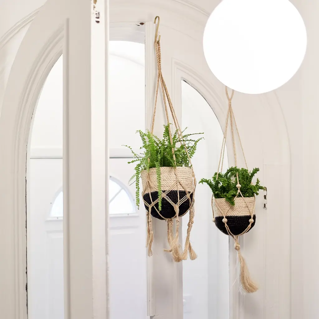 A beautiful planet deserves a beautiful hanger and planter. Bring life to your room by hanging a plant with this handmade natural decorative jute hanger. It's finished with a knotted bottom to act as a base for your potted plant or Korissa basket.Each product is designed and curated by Korissa, sustainably handmade by Fair Trade artisans in Bangladesh.Hanger only. Basket sold separately.