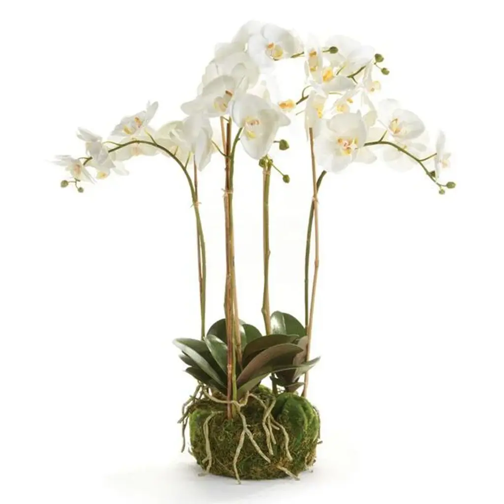 Flora by Ethan Allen—The basics of beautiful floral design—plump purple orchid blossoms perch atop structured stems in this Zen-like faux floral and stone arrangement. Our Plum Orchids in a Black Pot are simply striking in modern settings, or anywhere befitting a mix of nature-inspired elements.