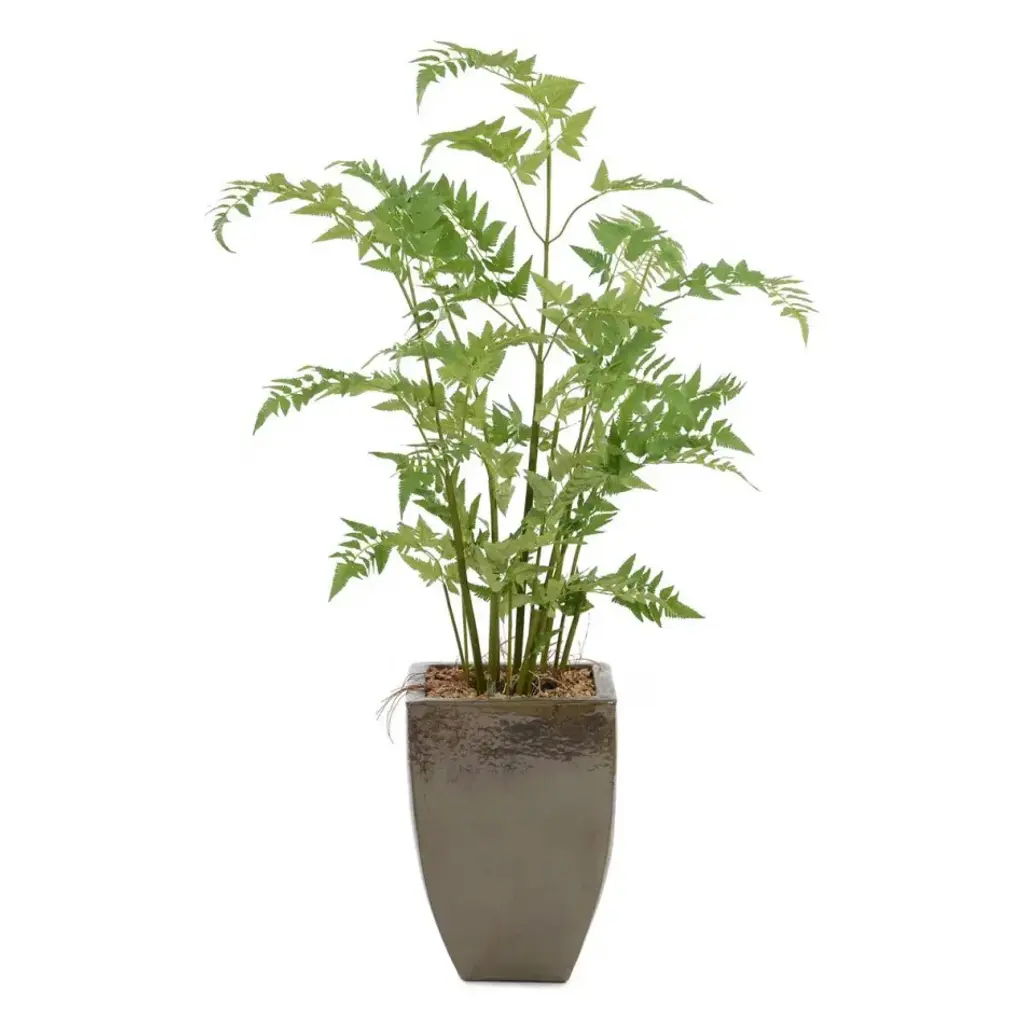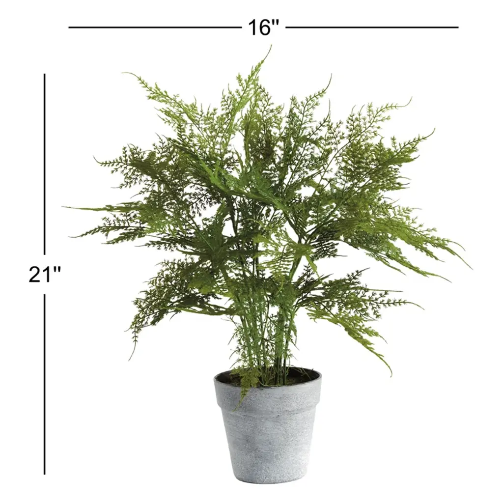 Experience the lush beauty of nature without the hassle. Our Plumosa Fern Drop-in is expertly crafted to mimic the intricate, feathery fronds of the real thing, and adds a touch of lush greenery. It comes in a standard sized cement pot to fit into a coordinating outer pot or planter, a versatile accent that brings the serenity of the outdoors in. Elevate your home decor with this low-maintenance fern, and enjoy the beauty of nature year-round.