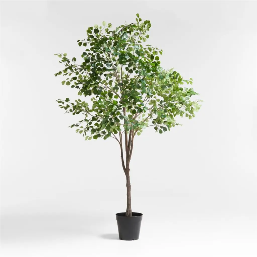 Refresh the room with a touch of the tropics. Our lifelike, nine-foot-tall tree fools the eye with its realistic branches and verdant, tapered leaves characteristic of the ficus. In its black nursery pot, our tall and graceful artificial faux ficus tree is ready to be "potted" in one of our planters or baskets (sold separately).