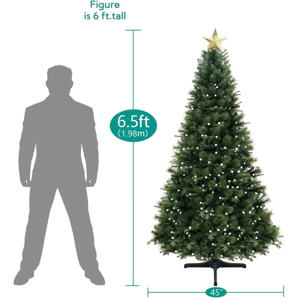 Pre-Lit Green Christmas Trees With Realistic Branch Tips & Cozy Warm Lights, Perfect For Any Holiday Setting - 6.5 Foot