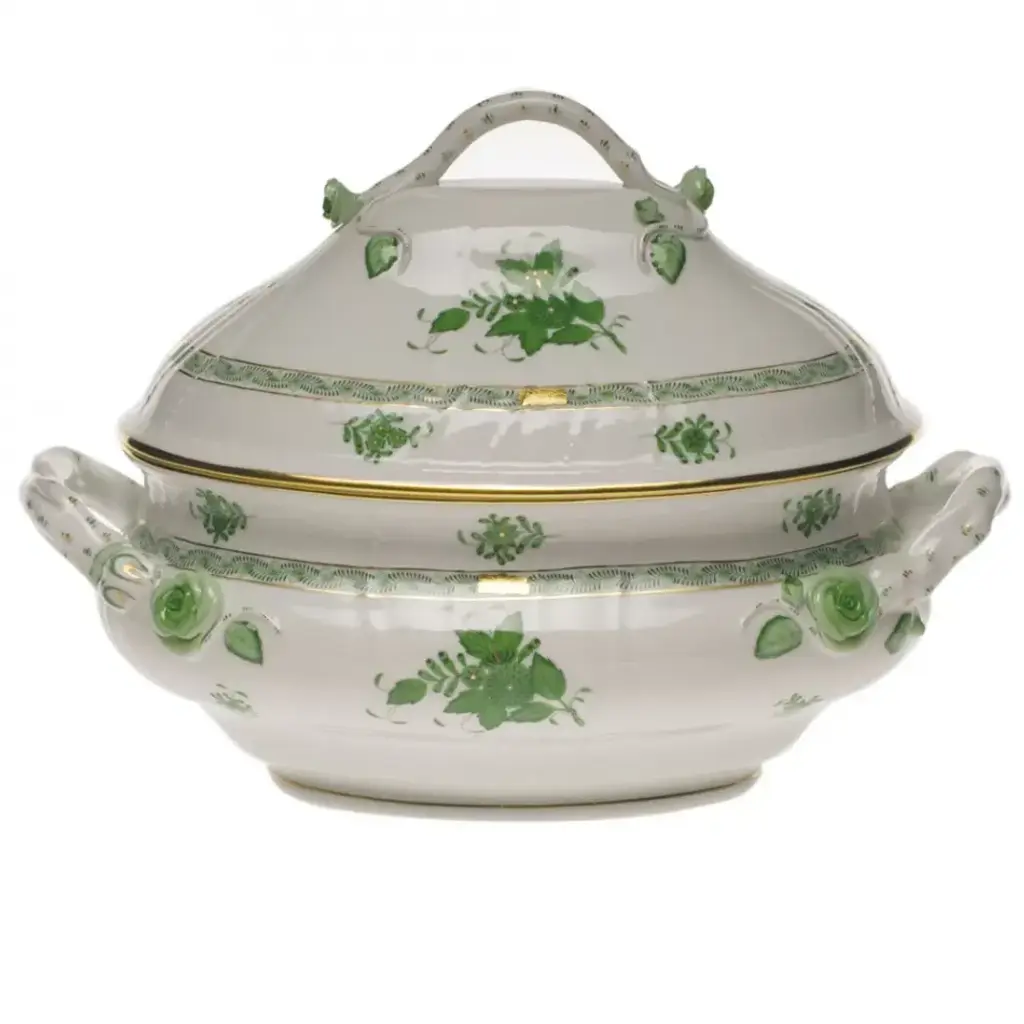 Queen Victoria Multicolor Tureen With Branch 2 Qt 9.5 In H