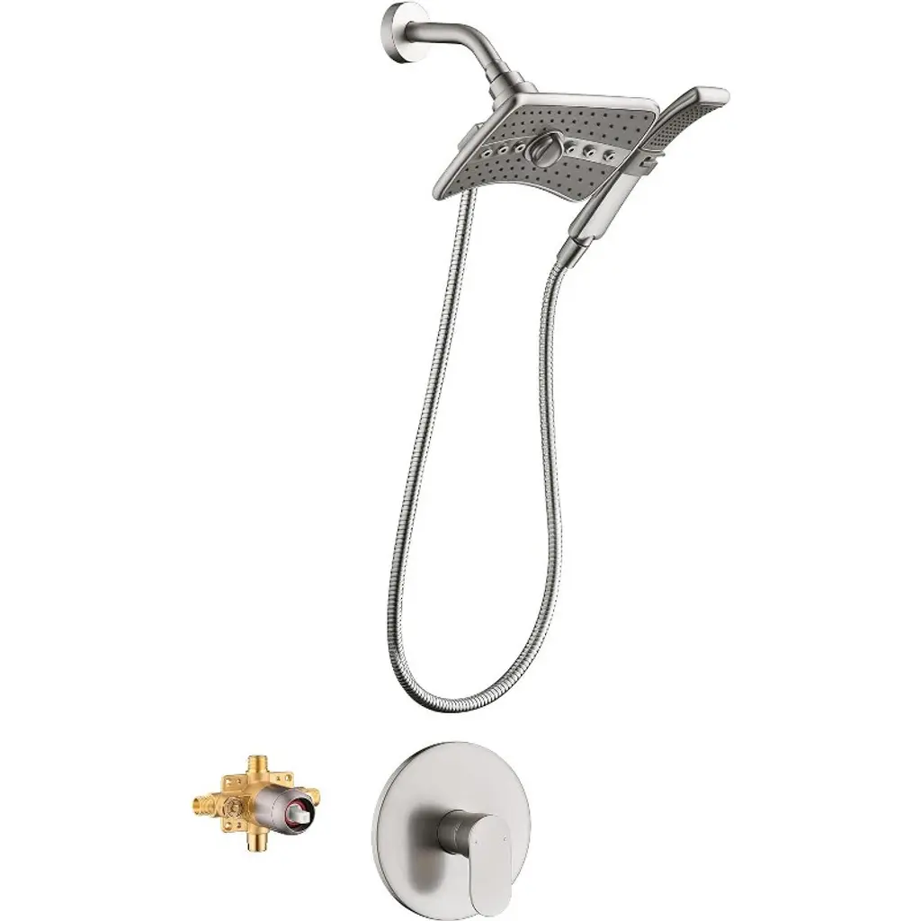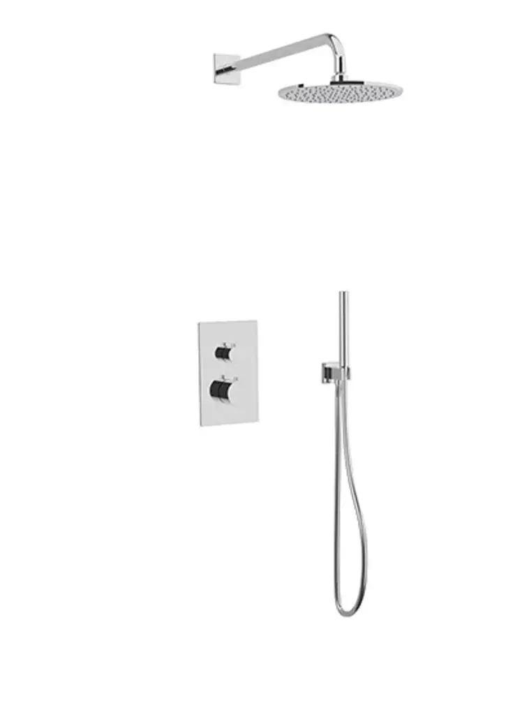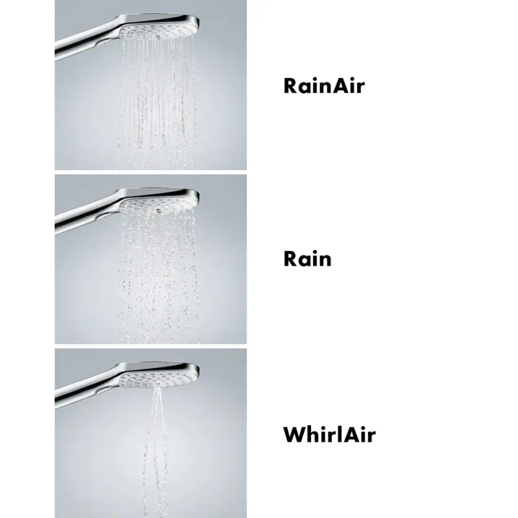 The hansgrohe Select shower system featuring PowderRain is a one stop shop to update your existing shower. This shower kit includes the Raindance Select S 120 2.5 GPM 3-Jet Handshower with PowderRain in Brushed Nickel, Raindance S 240 2.5 GPM 1-Jet Rain Showerhead with PowderRain in Brushed Nickel, 15-inch Raindance Showerarm in Brushed Nickel, Unica S 24-inch Wallbar in Brushed Nickel, Round Wall Outlet in Brushed Nickel, Ecostat S Thermostatic Shower Trim with Volume Control and Diverter in Brushed Nickel, and the iBox Universal Plus Rough with Service Stops. Everything needed to install this kit is included, simplifying your selection and Installation process.