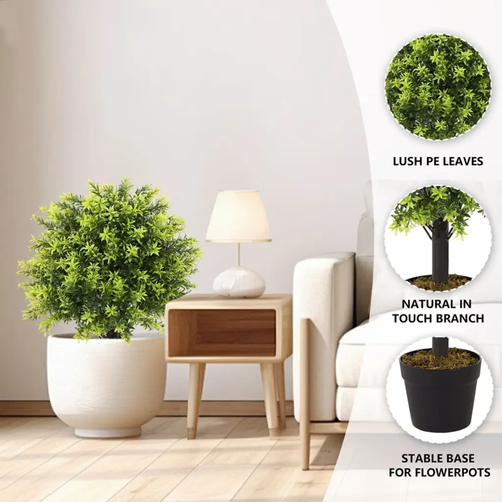 Add an elegant touch to your porch, patio, or balcony with our artificial plant trees. These artificial plant trees are engineered to withstand the elements and maintain a fresh look in any weather. They are made of durable materials, making them suitable for both indoor and outdoor use.