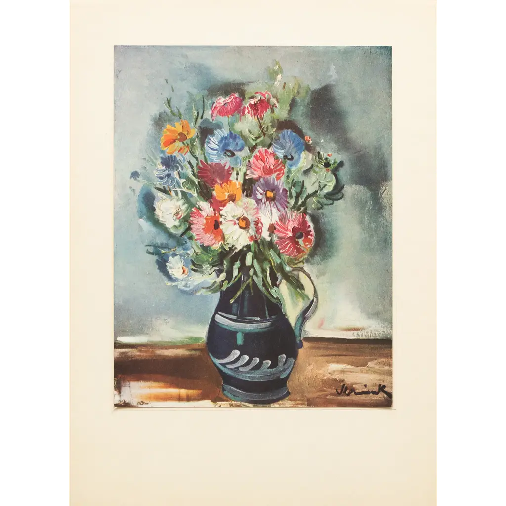 Colored with contrasting hues of yellow, gold, and brown, the fern fronds poking out of the bronze urn in this Mary Faulconer print each appear unique. Sitting atop a pattern of triangles and squares in brown, red, and black, the urn is complemented by the brown shapes from the table and the warmth of the bold, tectured wall. Red Ferns Mary Faulconer American (1912–2011) Date: 1980 Lithograph, signed and numbered in pencil Edition of 250 Image Size: 14 x 11 inches Size: 26 in. x 22.5 in. (66.04 cm x 57.15 cm)