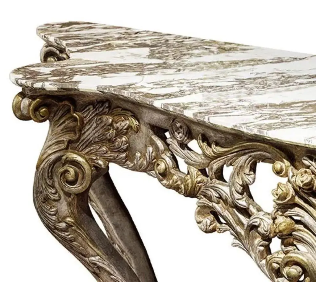 Rococo Style Console Hand Carved Solid Wood Branches Flowers Marble Top