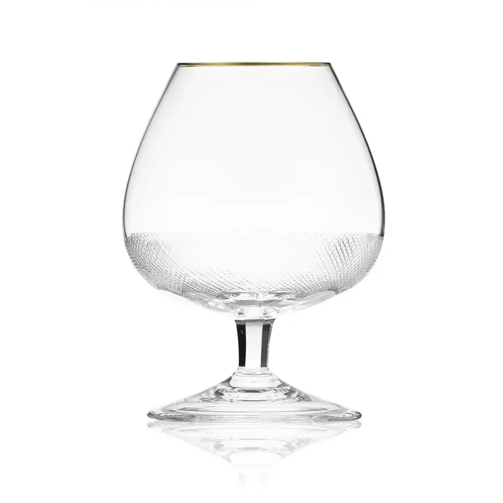 Royal Clear Lead-Free Crystal, Cut Stem, Diamond Cut, 24-Carat Gold Line Brandy & Cognac 320 Ml