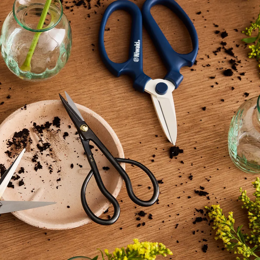 Get ready to unleash your floral creativity with the Sakagen Flower Scissors by Niwaki. Designed for those who appreciate the artistry of flower arranging, these beautifully hand-crafted scissors from Japan seamlessly combine traditional ikebana style with modern flair. Their ergonomic resin-molded handles and fluorine-coated blades make it easy to effortlessly cut stems — they'll even handle a bit of woody pruning too. From the kitchen to the garden, they're the perfect tool for adding a touch of beauty to every corner of your home. Max cut 5mm. Perfect for cut flowers in the kitchen, greenhouse and around the garden, and will handle a bit of woody stem cutting too. Although Japanese carbon steel is durable, it can chip if mishandled, so use with care.