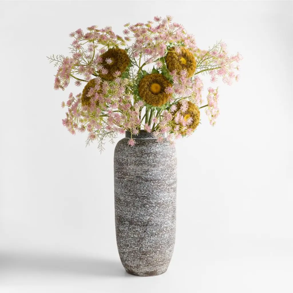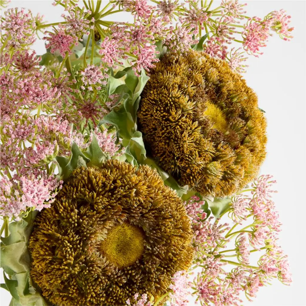 Abigail Ahern designed this bouquet of faux florals with all the shaggy, naturalistic beauty of real wildflowers and garden-grown favorites. Frothy clusters of pink Queen Anne's lace flowers surround petalless sunflower stems with sunny yellow centers and fresh green collars in a gorgeous artificial arrangement that lasts. Showcasing Ahern's signature mastery of texture, palette and movement, the Salcombe bundle has a glorious spontaneity that we adore."An English garden, always in bloom." Our exclusive Cotswolds-inspired collection with British floral designer Abigail Ahern reimagines faux botanicals for the modern home.