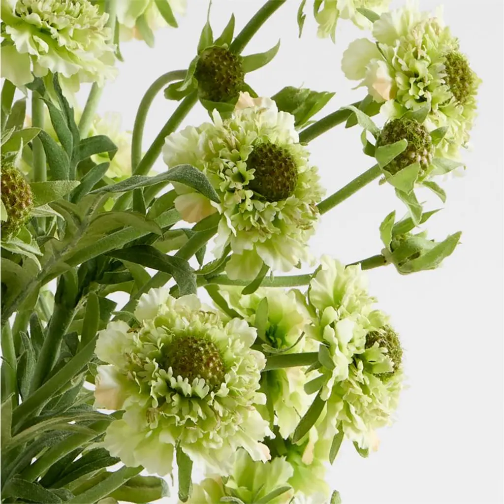 Abigail Ahern gathered a bouquet of faux chartreuse scabiosa stems with all the shaggy, naturalistic beauty of the garden-grown favorite. (The Real Touch blooms are so stunningly lifelike, we simply can't get over it.) Supported on slim stems along with angular leaves, layers of luxurious petals surround the spiky centers of the delightful pincushion flower for a gorgeous artificial arrangement that lasts. Showcasing Ahern's signature mastery of texture, palette and movement, the Saunton bundle has a glorious spontaneity that we adore."An English garden, always in bloom." Our exclusive Cotswolds-inspired collection with British floral designer Abigail Ahern reimagines faux botanicals for the modern home.