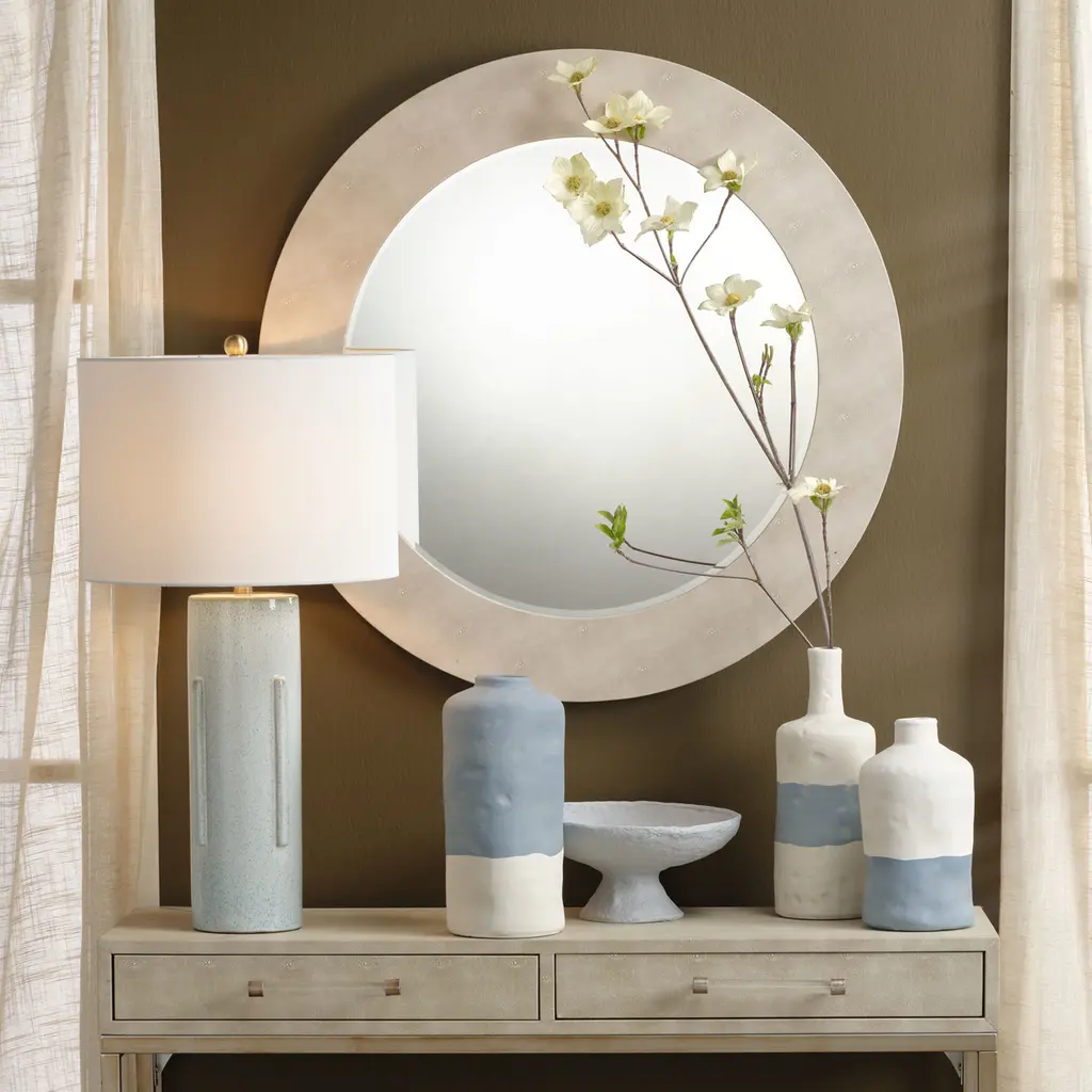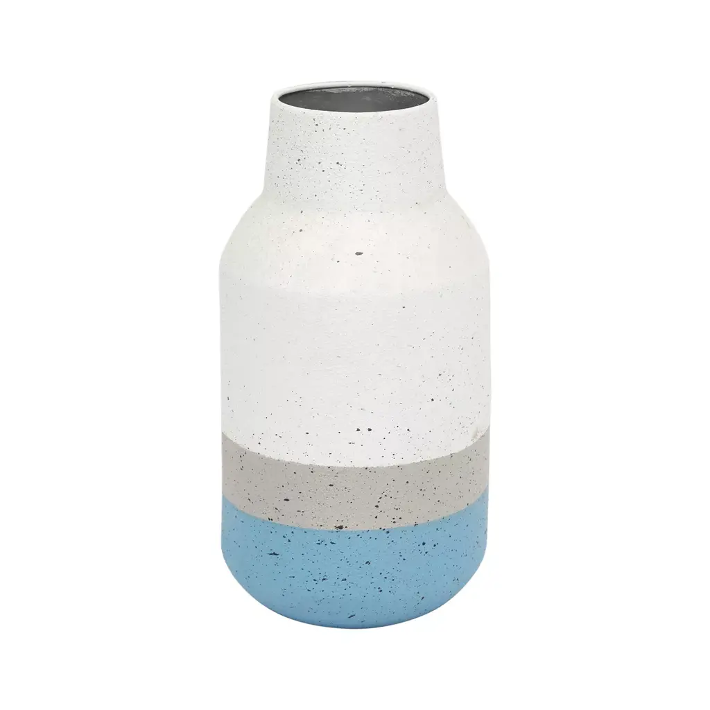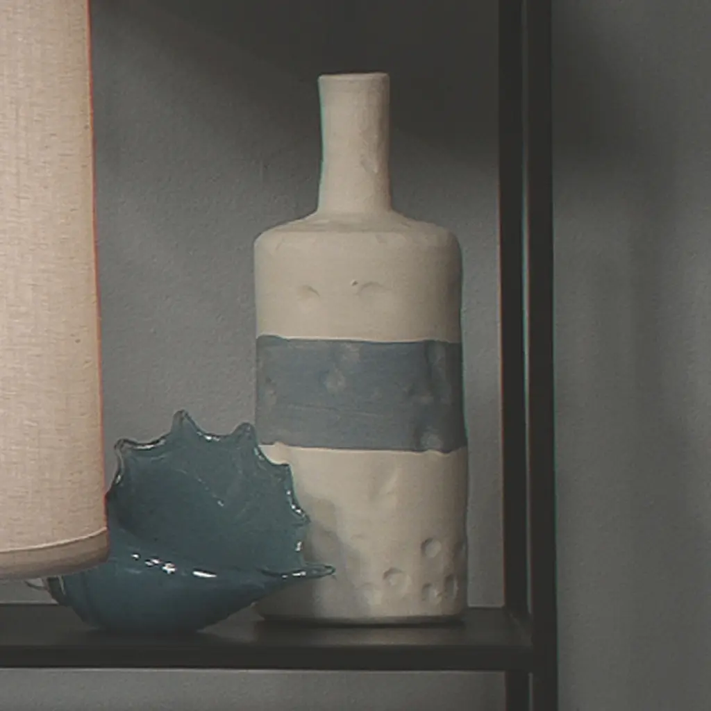 This set of vessels is ready to style any table top or windowsill it meets. Crafted and glazed by hand, these ceramic vessels feature an organic shape and imperfect lines in matte blue and white. Show off your favorite bundle of faux florals or let these vases wow on their own.