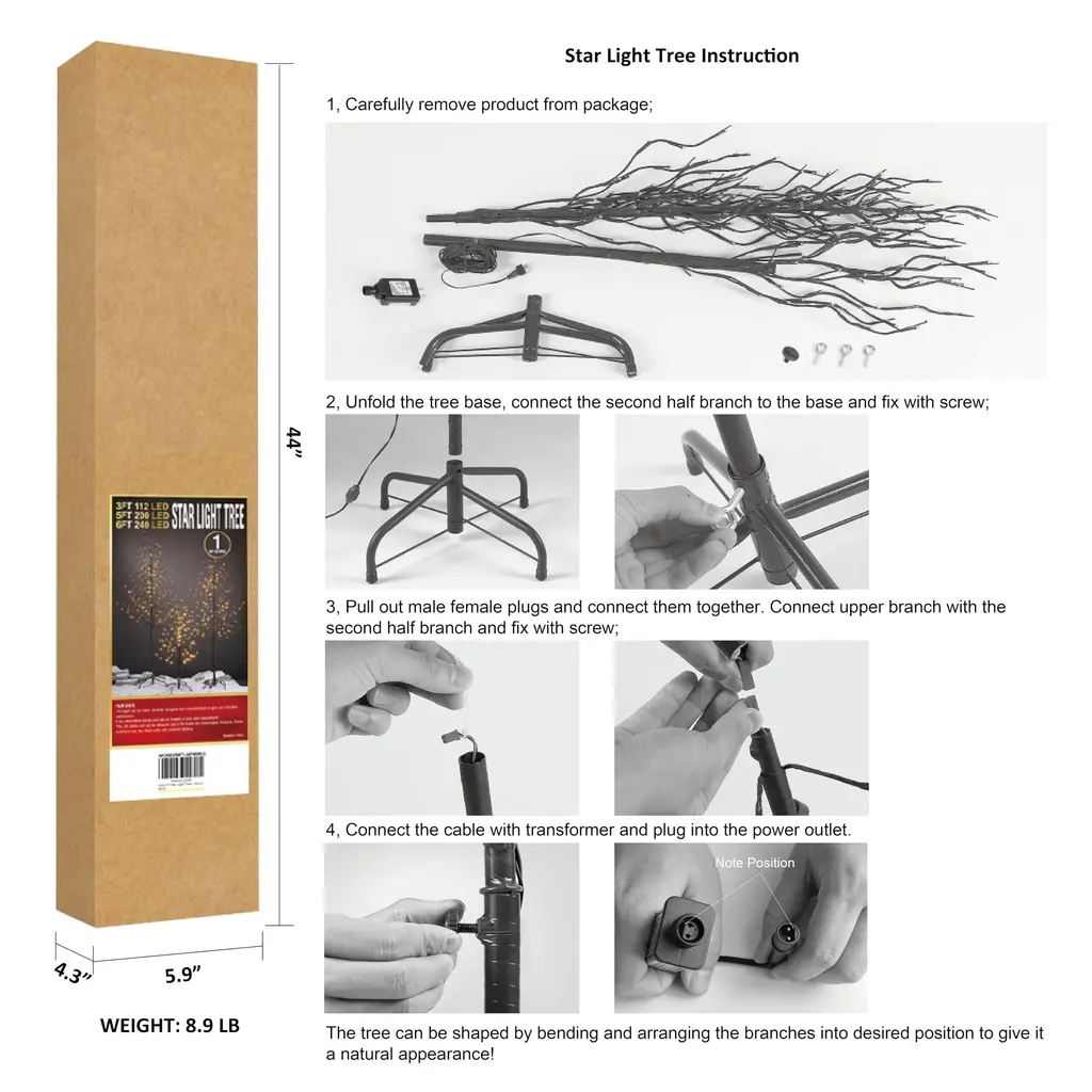 ULTREA SAVING: Set of three, three different sizes in the box. Flexible Branch: Bendable branch DIY for shaping a natural tree, so you can reshape them as desired, sturdy enough to support relatively ornaments. Energy Saving: LED lights meet the need of brightness,energy saving and long life up to 30,000 hours. Safety Low Voltage: UL certificated and waterproof adapter with VI energy efficiency at 24 low voltage. Multi-functional: Widely used for home, shop, garden, Christmas, party, wedding and all kinds of festival.