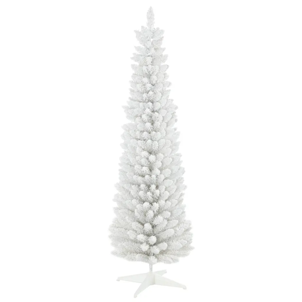 SHINY FURNITURE Christmas Tree: Light up your holiday wonderSHINY FURNITURE brings you a stunning Christmas tree this Christmas to add luster and warmth to your holiday decorations. Our carefully designed Christmas trees blend modern craftsmanship with traditional charm, displaying unrivaled elegance and sophistication.Product FeaturesSeriously, No Hassle: If you're looking for an Unlit artificial Xmas tree that holds its shape and is a securer option for your family, look no further than this 5 ft artificial Christmas tree. It is decorated in snow-flocked bristles, so you get the beauty of a traditional tree without maintaining a fresh-cut tree (no needles).Make Fluffing Fun: The only time you're really spending is fluffing the tree, which can be a family-friendly way to decorate and share some hot chocolate. Or make it a game: race against the clock, compete to see who fluffs the most, and create an obstacle course; the options are nearly endless.More Ambience is Better: Flame-retardant yet realistic tree decor is going to give you some extra peace of mind in case you put your tree next to the fireplace. Of course, it's great ambience on its own, but a fireplace...I mean, come on.Easy, Easy, Easy: Here's where the rubber meets the road: You get a slim cardboard box (easy storage). You get a small amount of pieces to put together (easy assembly). You get a lightweight and strong base. Even though it's a fake Christmas tree, we've got you covered, start to finish.Pencil Christmas Tree Info: Overall Dimensions: 21.25" Dia x 59"(5') H. In order to get a full appearance, please spread out all individual tips to get the best possible look from the tree. You'll spend about 30 minutes fluffing this tree.Pencil Christmas Tree Info: In order to get a full appearance, please spread out all individual tips to get the best possible look from the tree. You'll spend about 30 minutes fluffing this tree.SpecificationsMain Color:WhiteMain Material:PlasticHeight Value:5FT/7FTConclusionLet the SHINY FURNITURE Christmas tree be the highlight of your holiday season, and share the happiness and warmth of the holiday with your relatives and friends!