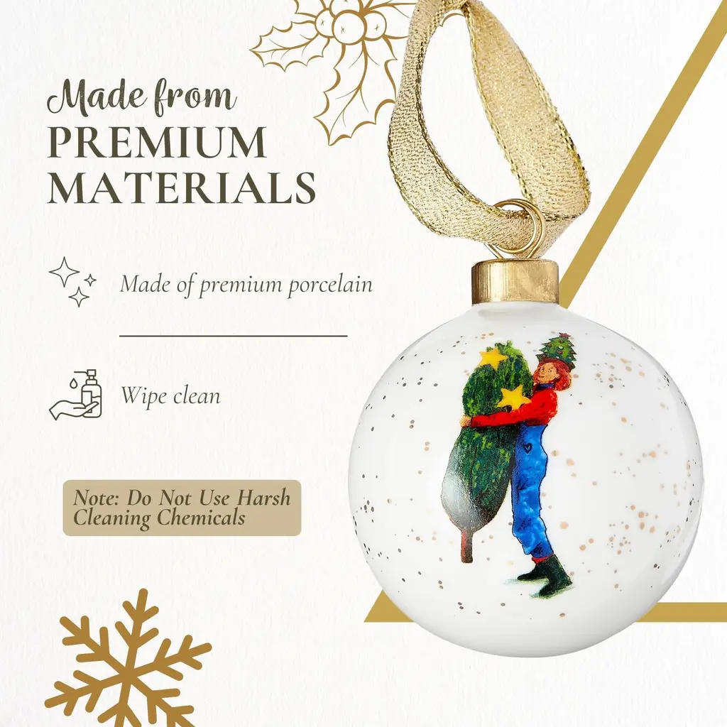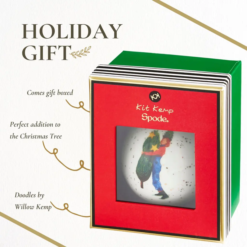 Spode Kit Kemp Christmas Ornament - Doodles Branch Manager - Fine China Whimsical Festive Keepsake, Collectible Holiday Decoration for Tree & Seasonal Decor - Holiday Ornament for Gift Giving - NewWelcome to the enchanting world of the Kit Kemp Collection by Spode, where timeless tradition meets contemporary elegance. Whether gracing your tree or on the mantel display, these ornaments are sure to spark joy and conversation. Elevate your holiday celebrations with the Kit Kemp Collection by Spode, where every piece embodies the perfect blend of tradition and contemporary charm. Christmas ornaments elevate holiday decor by adding personality, warmth, and charm to any space. Whether you choose personalized holiday ornaments that reflect family traditions, or handmade Christmas decorations that showcase craftsmanship, ornaments bring a festive spirit to your home. Holiday ornament sets can unify a theme, while vintage Christmas ornaments add nostalgia, making your decor not only visually appealing but also deeply meaningful and memorable. Add holiday spirit to the tree with this Christmas Doodle Ornament painted by Willow Kemp. The porcelain ornament is decorated with a whimsical illustration celebrating the ritual of bringing home the tree. A gold ribbon is included for hanging on the tree, from the mantel or even a chandelier. Versatile and delightful, it's not just for the tree – it makes a perfect addition to any holiday gift. Packaged in a beautiful gift box, it's a thoughtful present for friends and family, sure to elevate their festive celebrations. Experience the magic of the Kit Kemp Collection by Spode and bring joy to your holiday season.FEATURES:COLOR:MATERIAL:WHAT'S IN THE BOX:PACKAGING:Retail Packaging