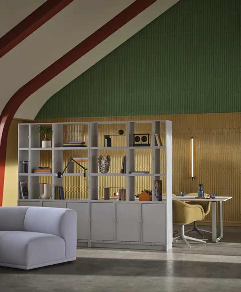 Being both versatile and functional, the Stacked Storage System can be arranged and rearranged for the exact aesthetic and functional needs of any space. Seen here is a selection of predesigned configurations that bring modern storage to modern office, whether at home or in the workplace. All modules with backboard can be mounted directly onto the wall.