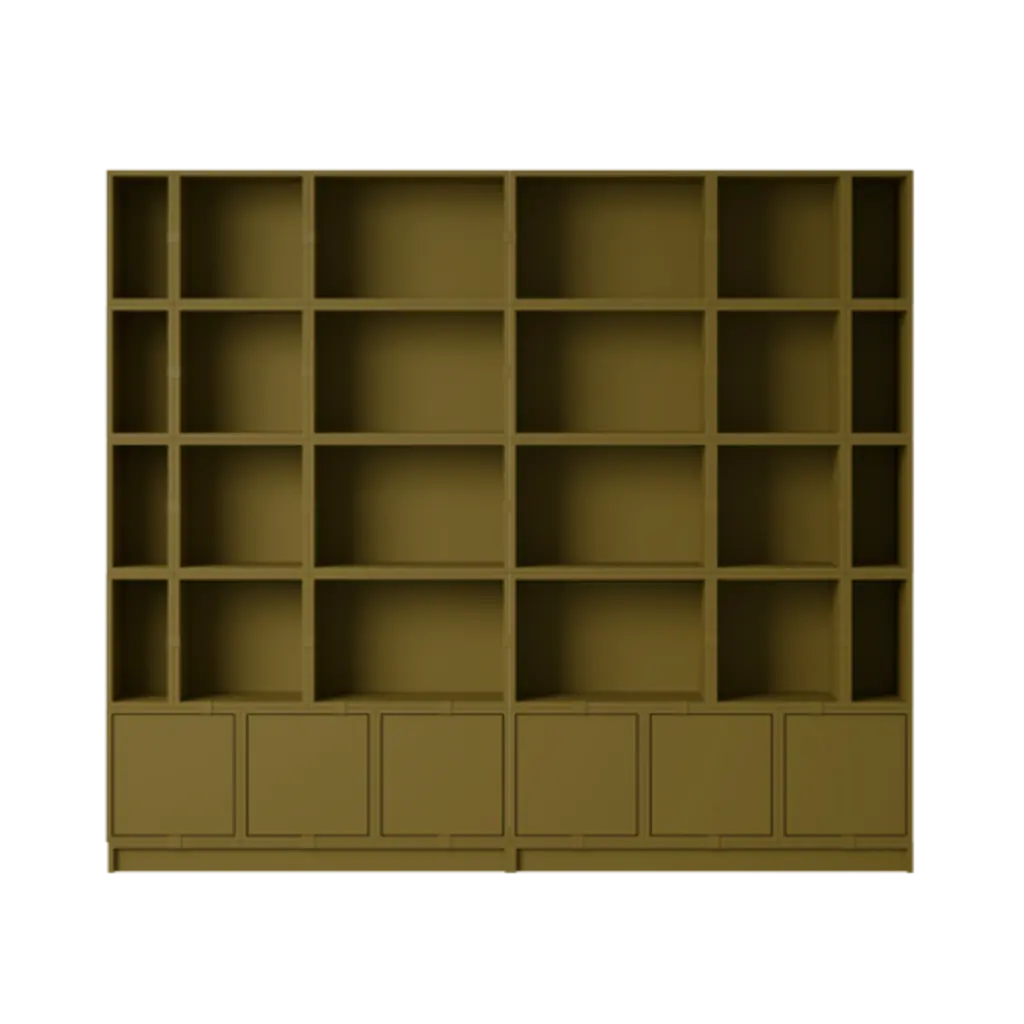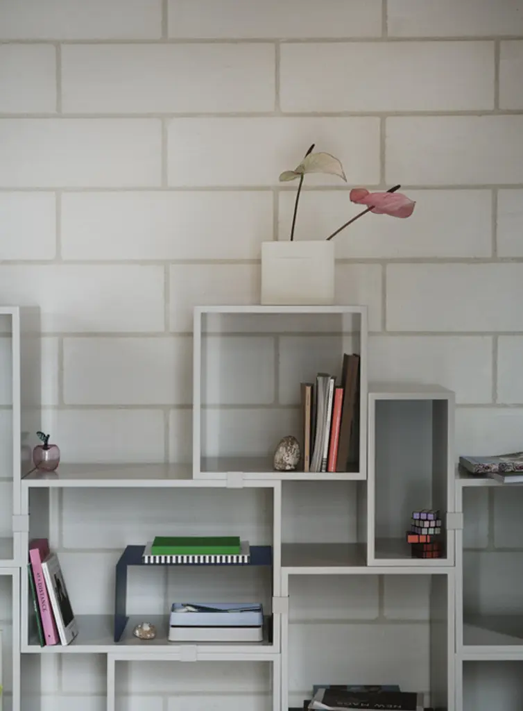 Being both versatile and functional, the Stacked Storage System can be arranged and rearranged for the exact aesthetic and functional needs of any space. Seen here is a selection of predesigned Bookcase configurations that bring modern storage to any home, workplace or hospitality setting. All modules with backboard can be mounted directly onto the wall.