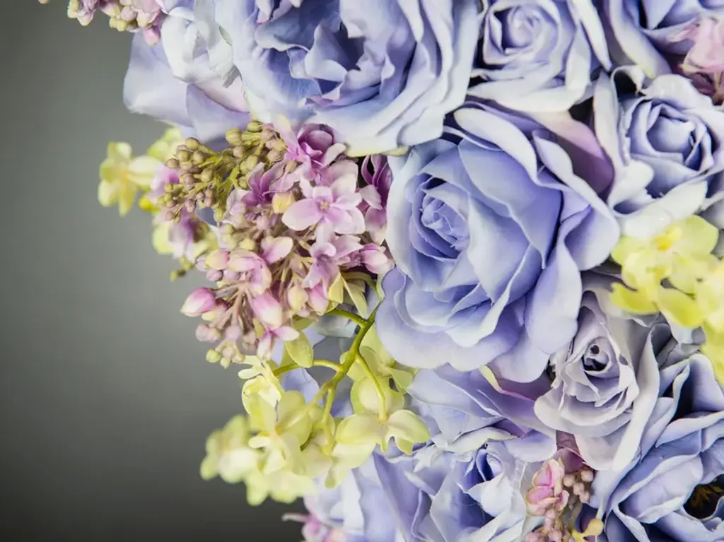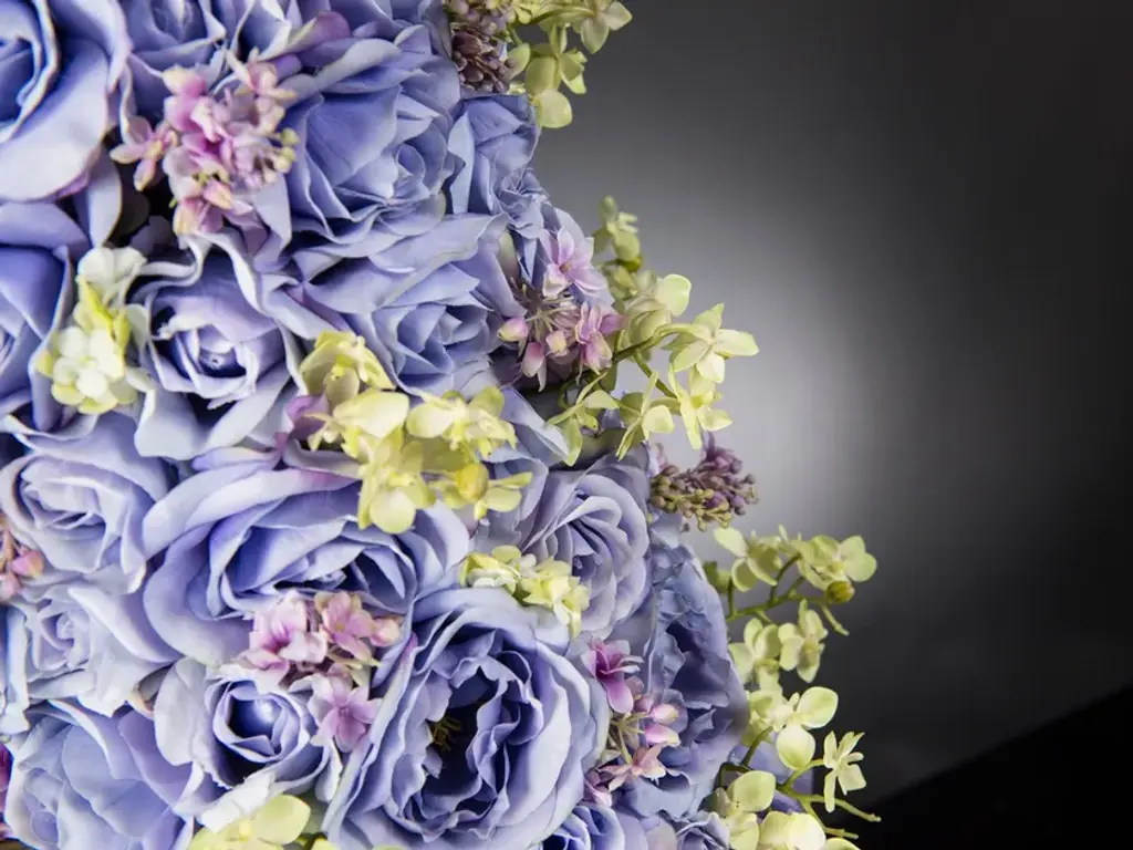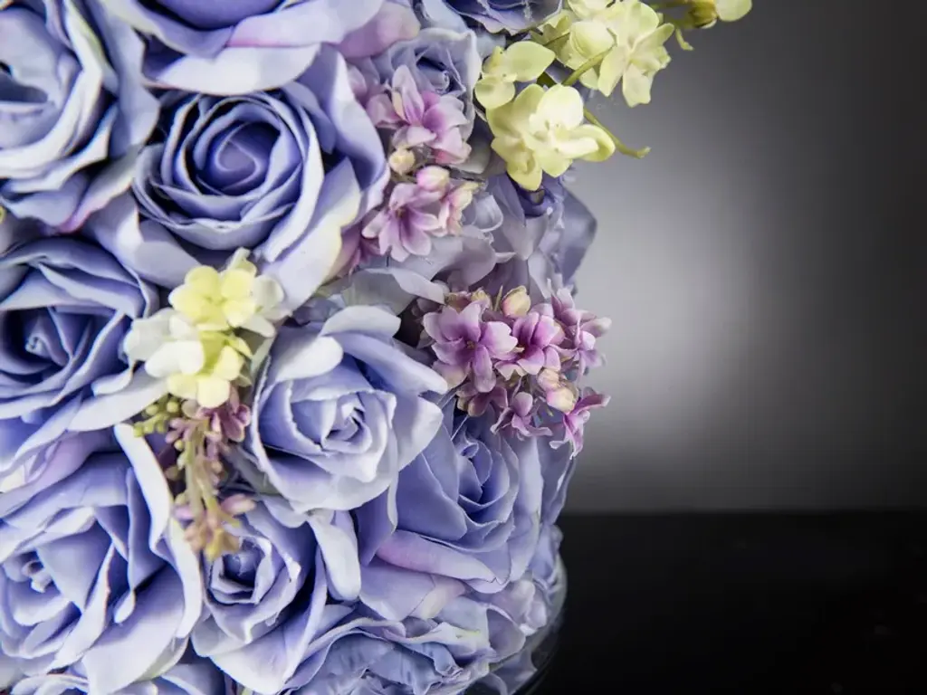 STAND CYLINDER ROSES is a faux flower arrangement in clear glass stand with artificial roses, created by our floral designers. Ideal for interior decor or weddings and events setting.