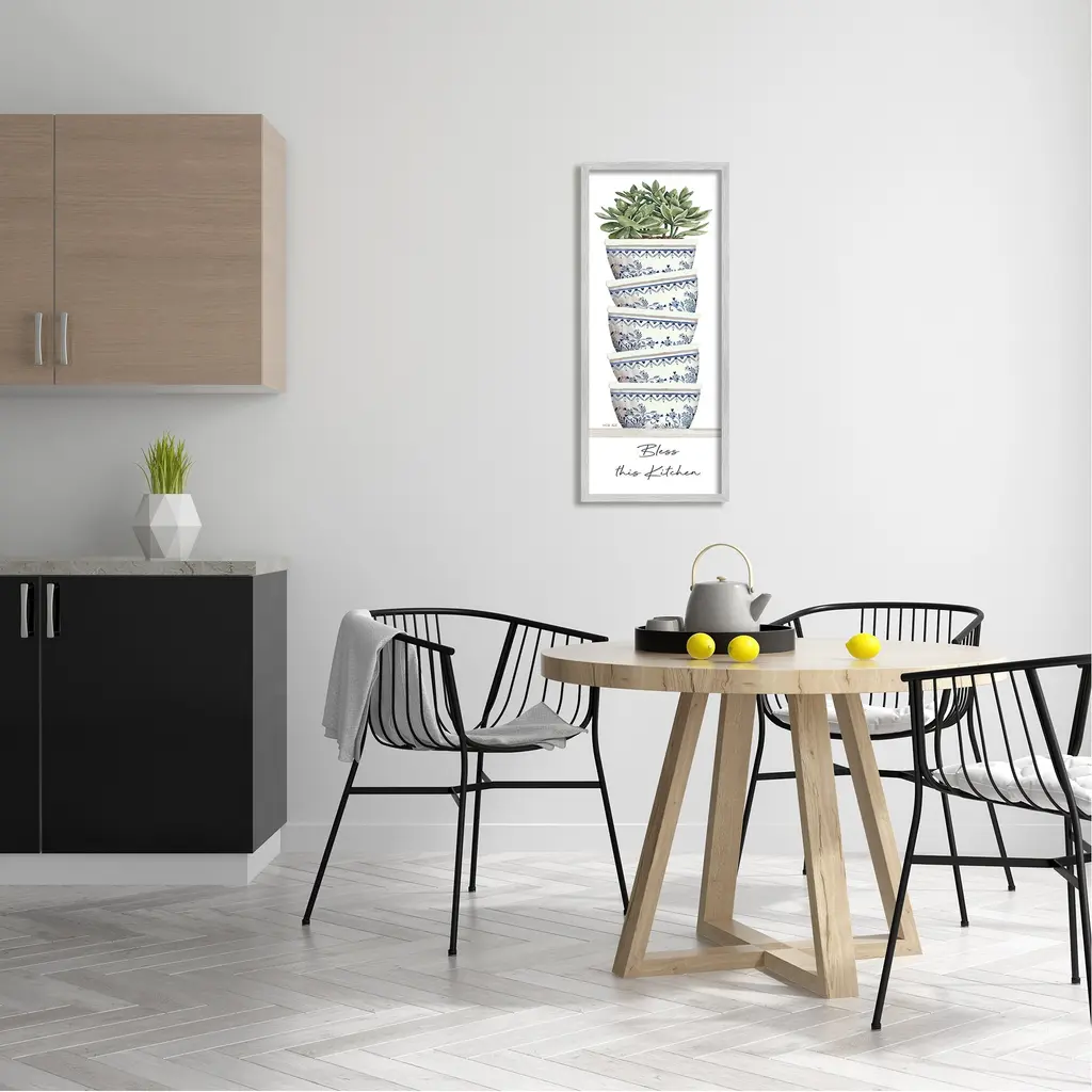 Stupell Bless This Kitchen Stacked Ornate Bowls Succulent Plant Framed Wall Art, Design By Cindy Jacobs - 13 X 30 - Grey