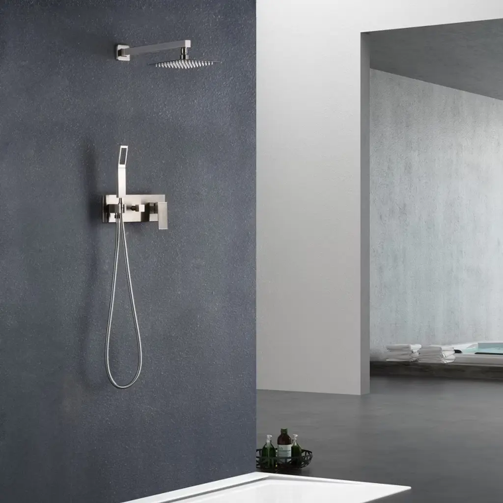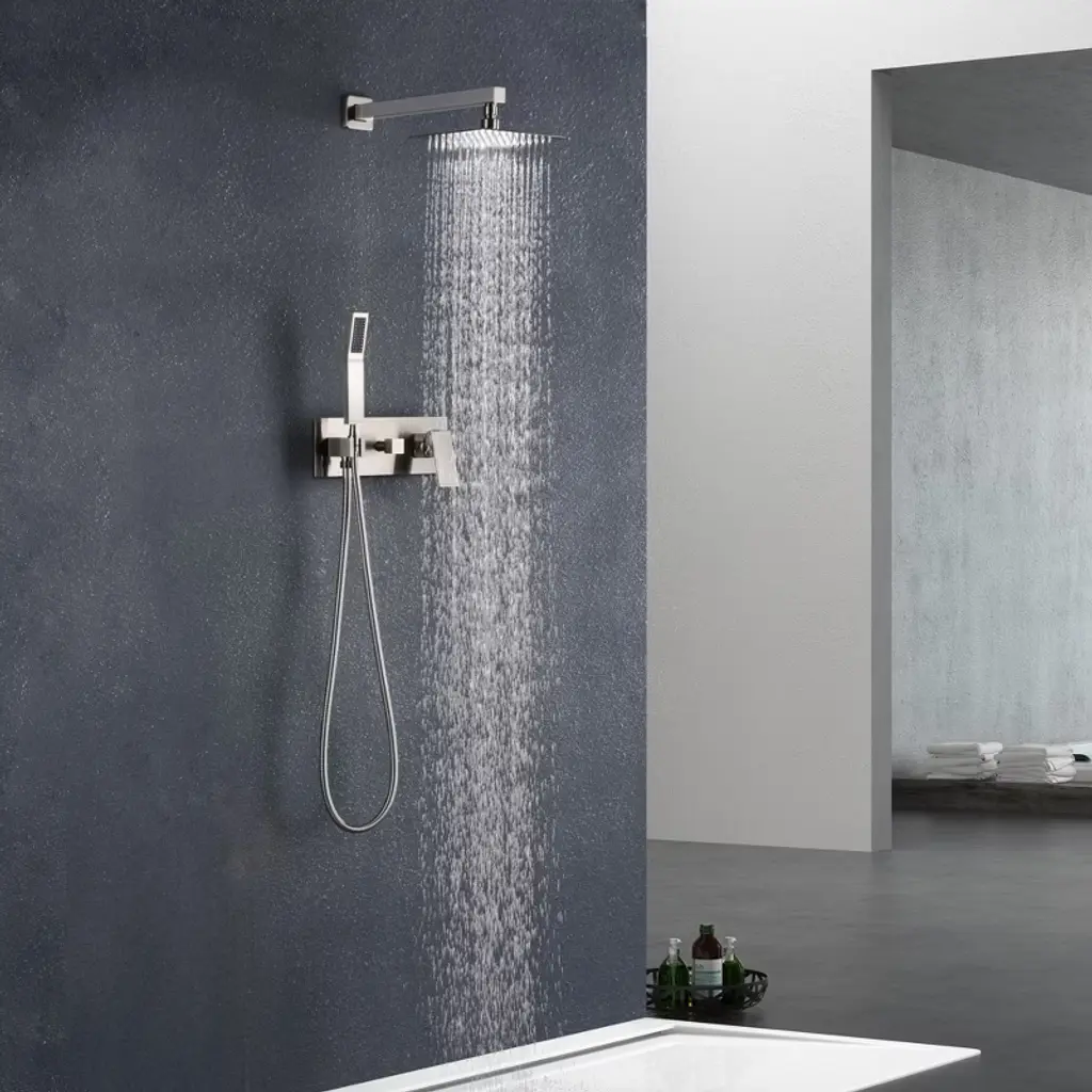Sumerain Brushed Nickel Rain Shower System With Handheld Shower And Pressure Balance Valve