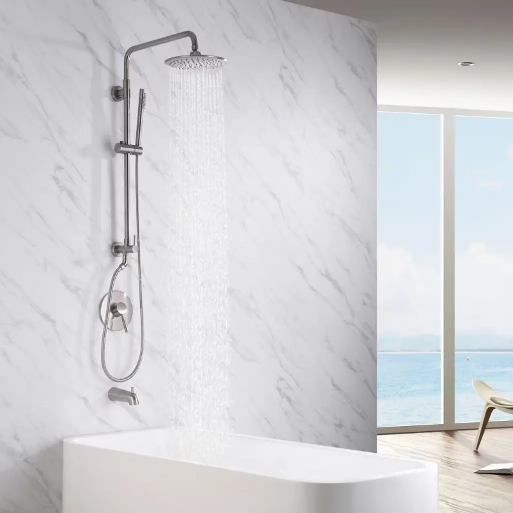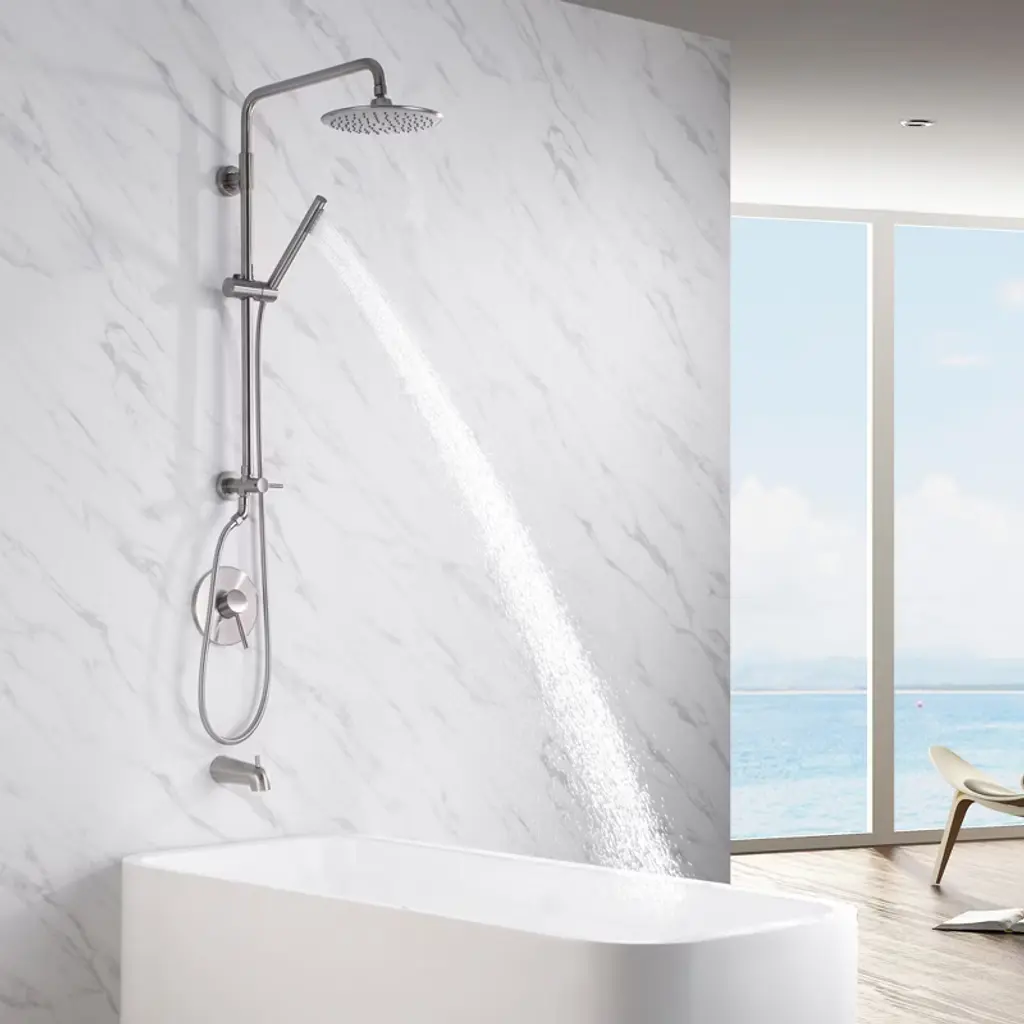 Sumerain Brushed Nickel Retrofit Shower Systems With 8 Inch Rain Shower Head And Handheld Shower